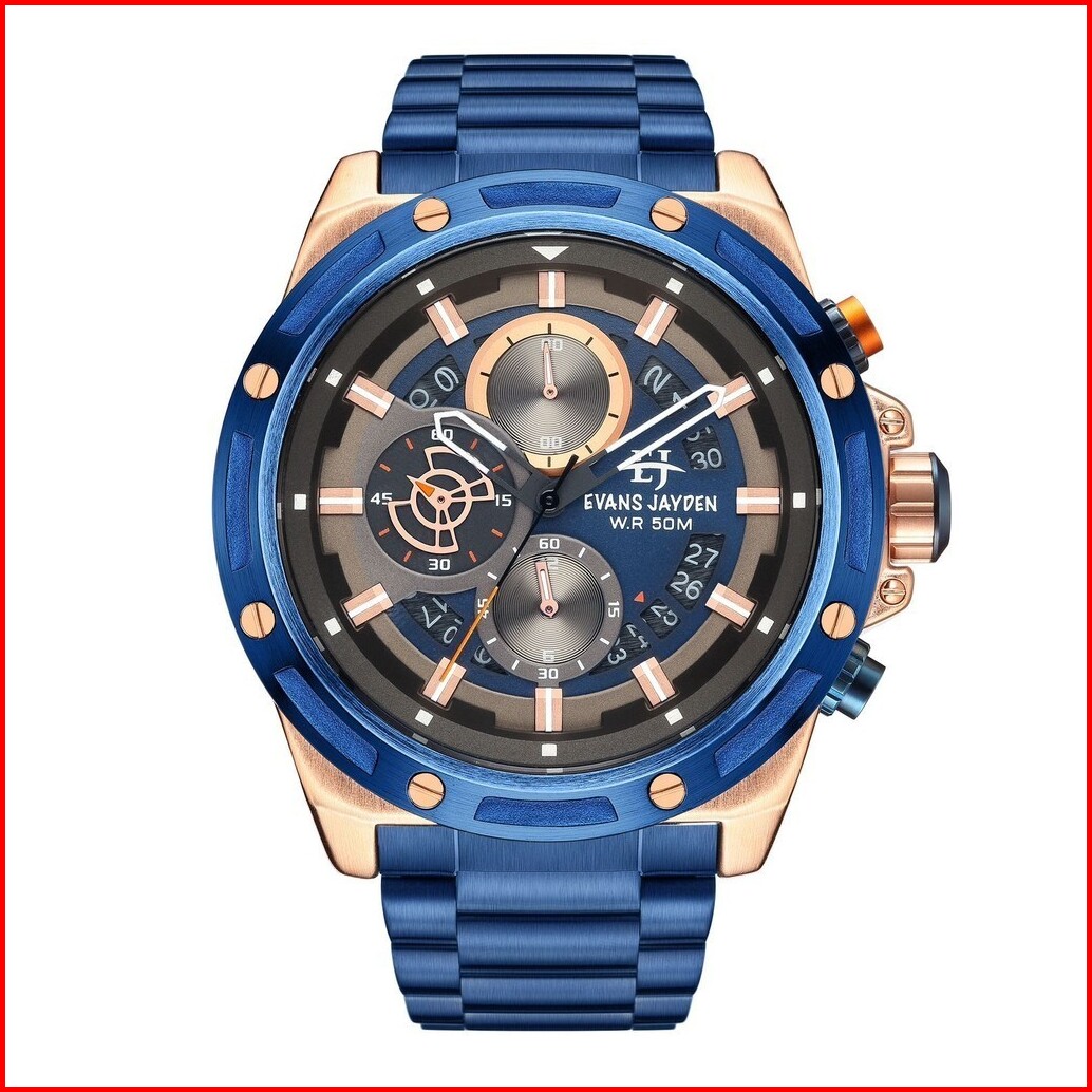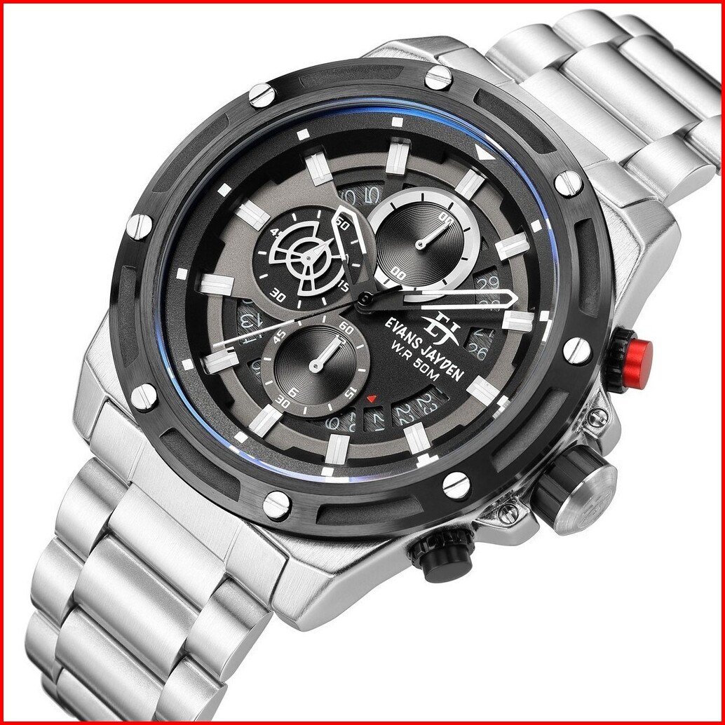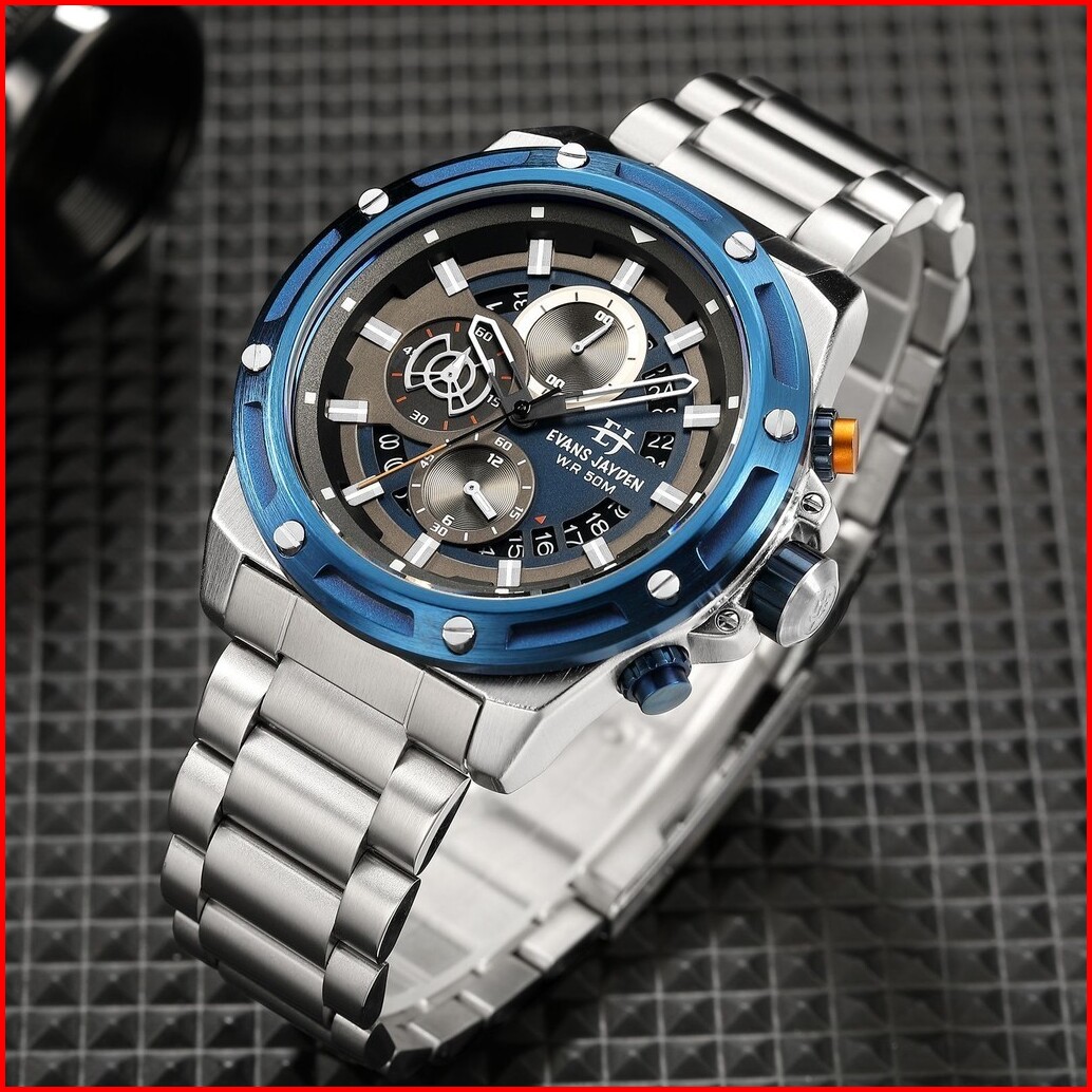 Diskon Evans Jayden Jam Tangan Pria 9597 Rantai Stainless Steel Chrono Kaca Sapphire 5 Atm