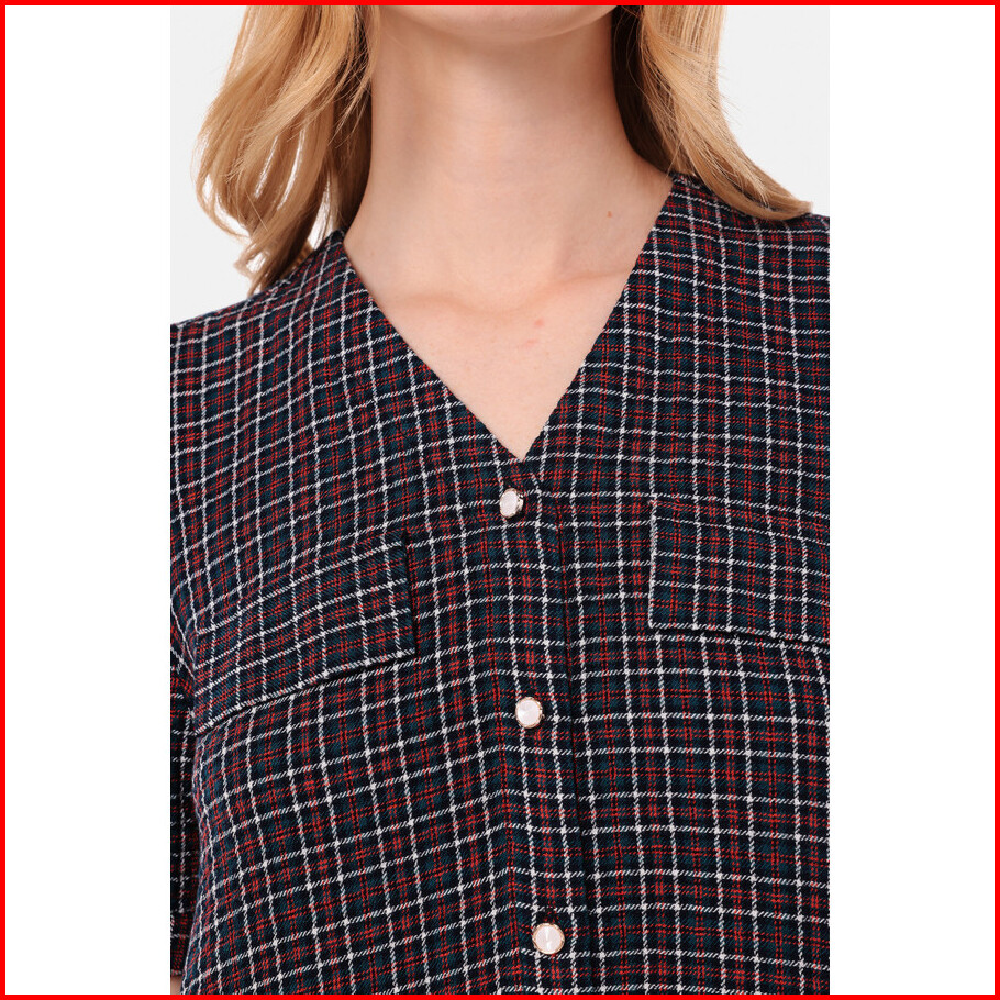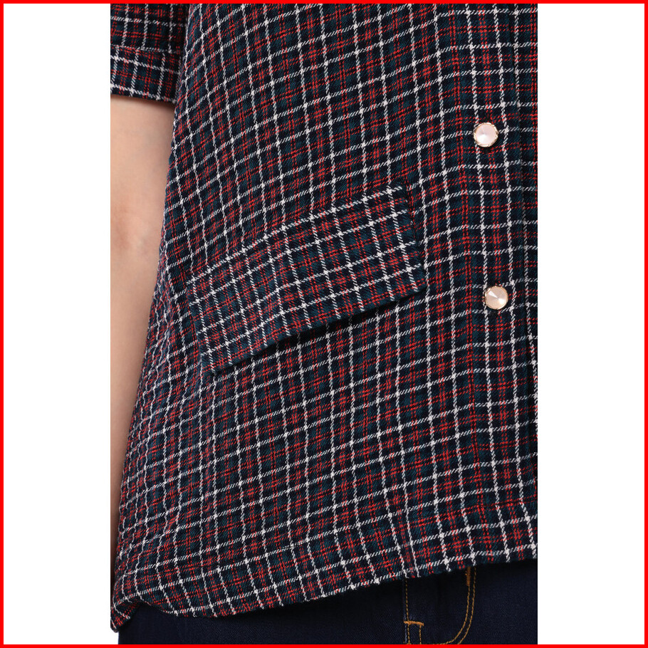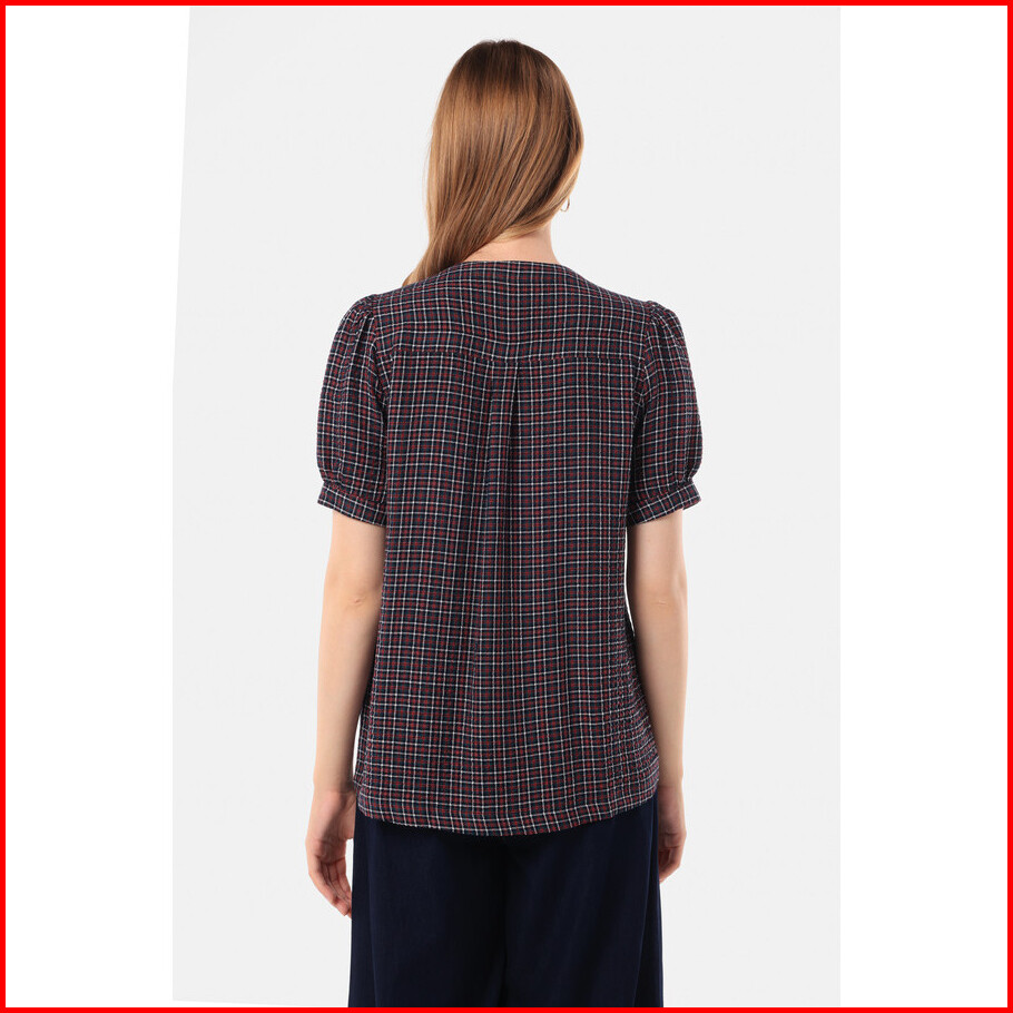 Minimal - Twinny - Blouse Plaid Lengan Pendek Wanita - Red