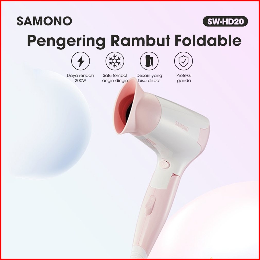 Samono Hair Dryer Pengering Rambut 2in1 Angin Dingin Dan Panas 200 Watt Bisa Dilipat Sw-hd20 Garansi 1 Tahun