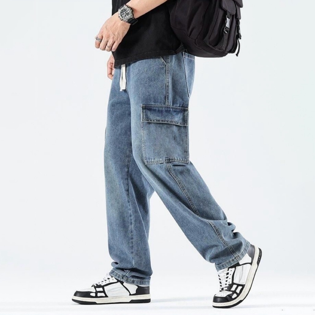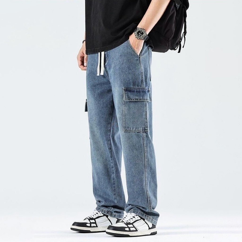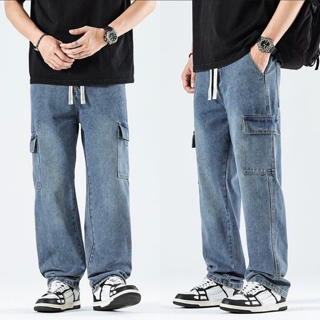 celana cargo panjang pria denim korean street style terbaru cowok D3W4SA celana jeans pria casual nyaman pinggang elastis