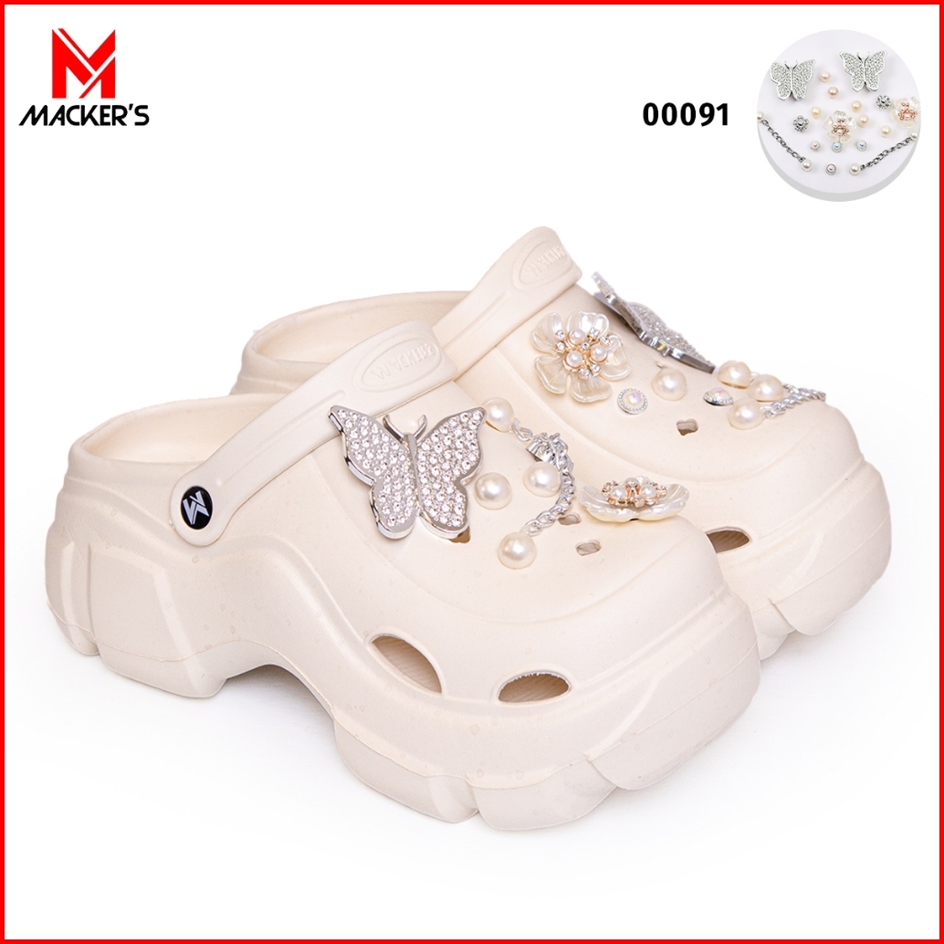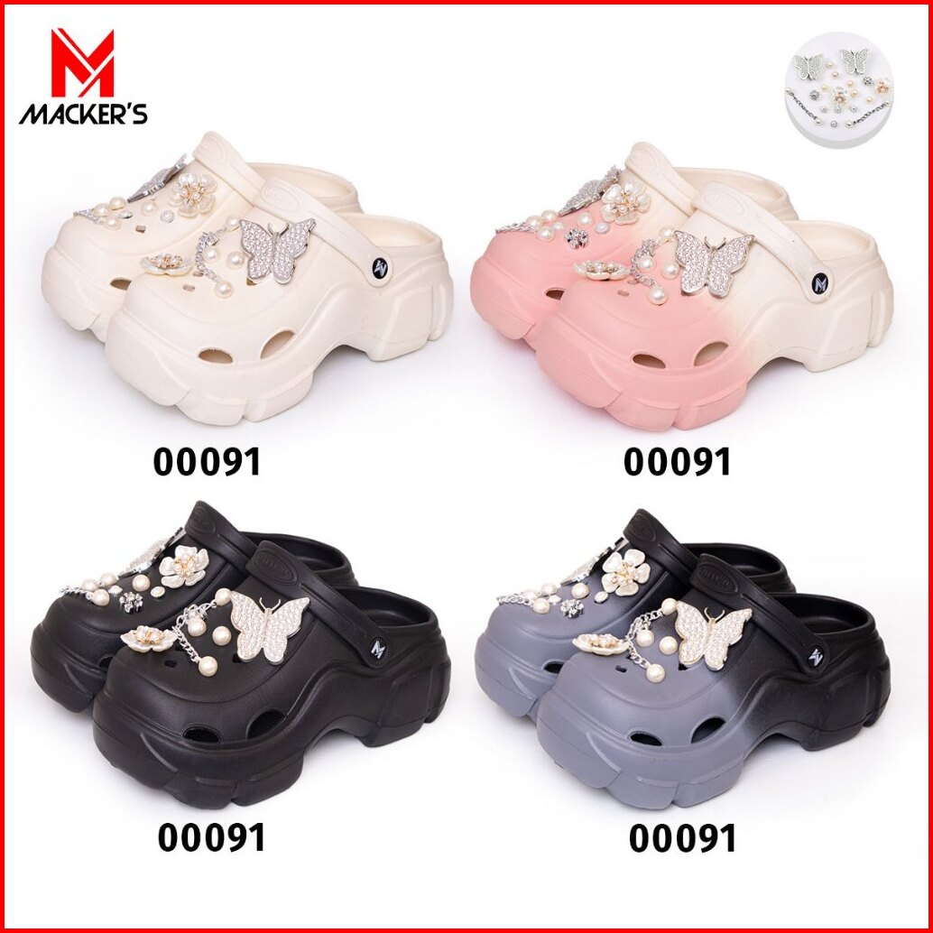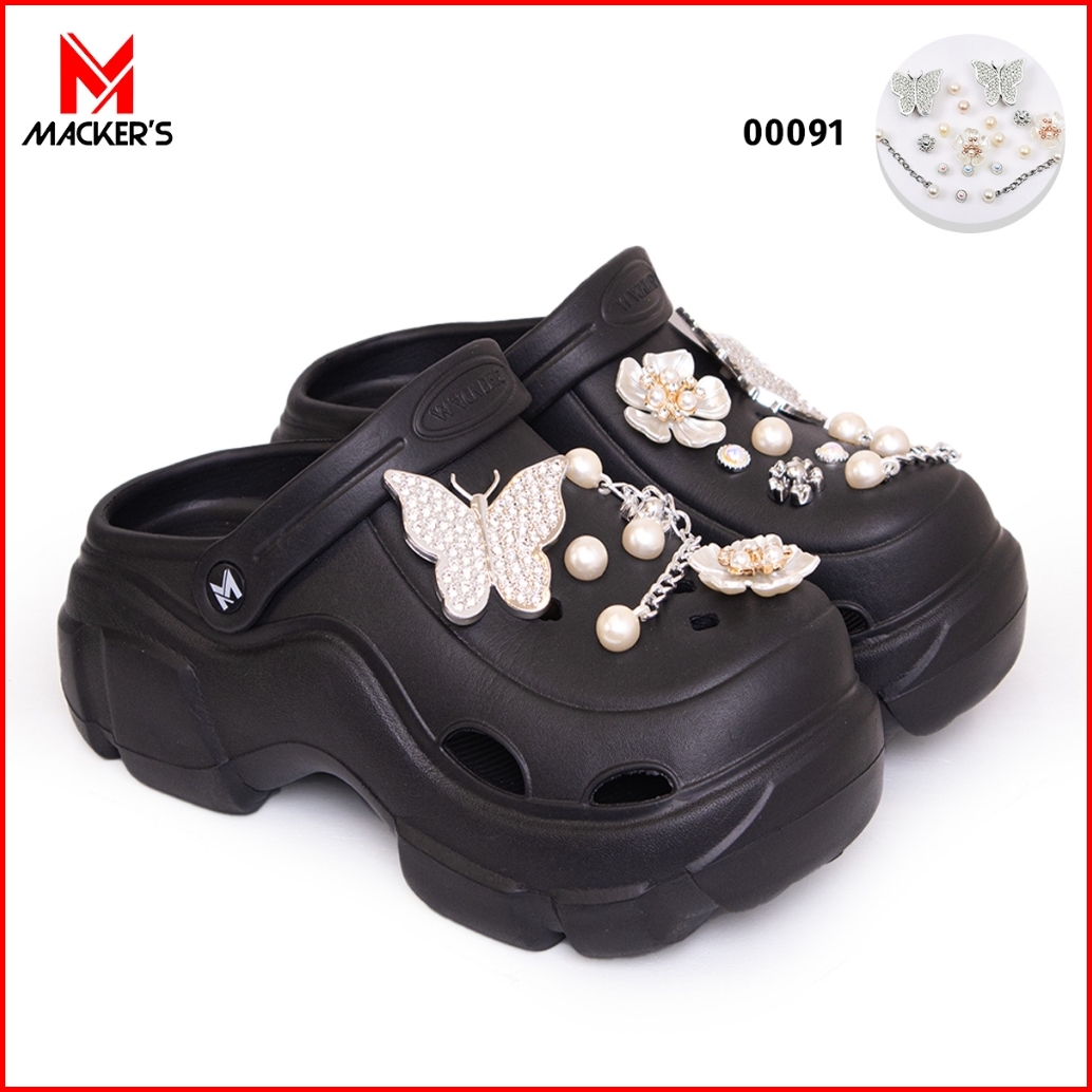 Macker S T01 091 Sandal Baim Sandal Kodok Wanita Terbaru Dengan Jibbitz Kupu-kupu Dan Rantai Sandal Wedges Lucu Sepatu K