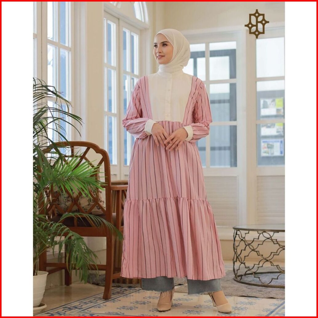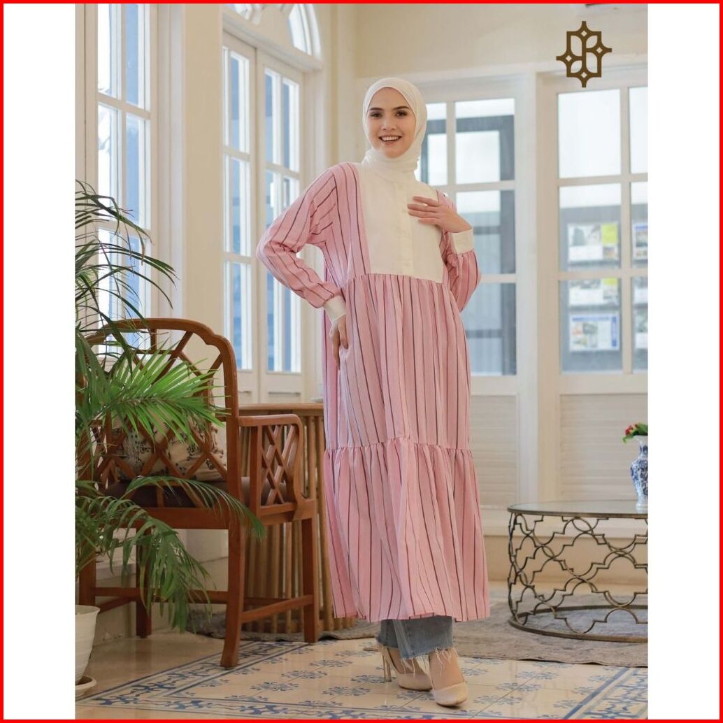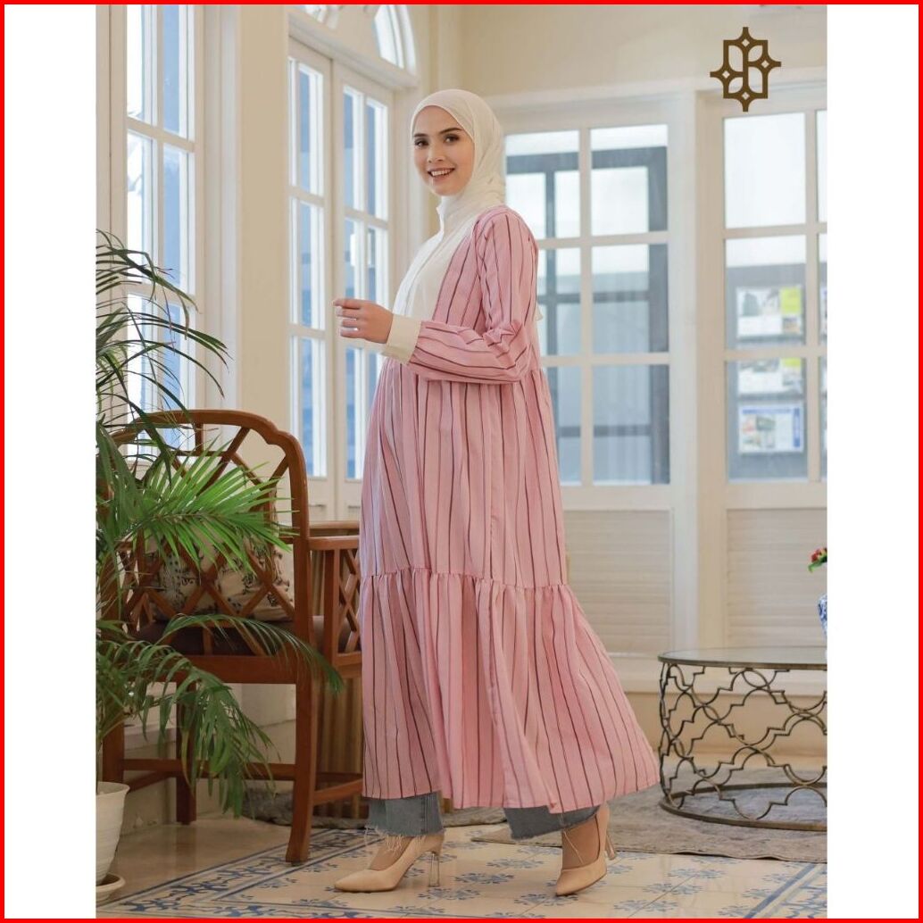 Saazz Stripe Verticalles Dress Wanita Remaja Kekinian Styles Busui Friendly