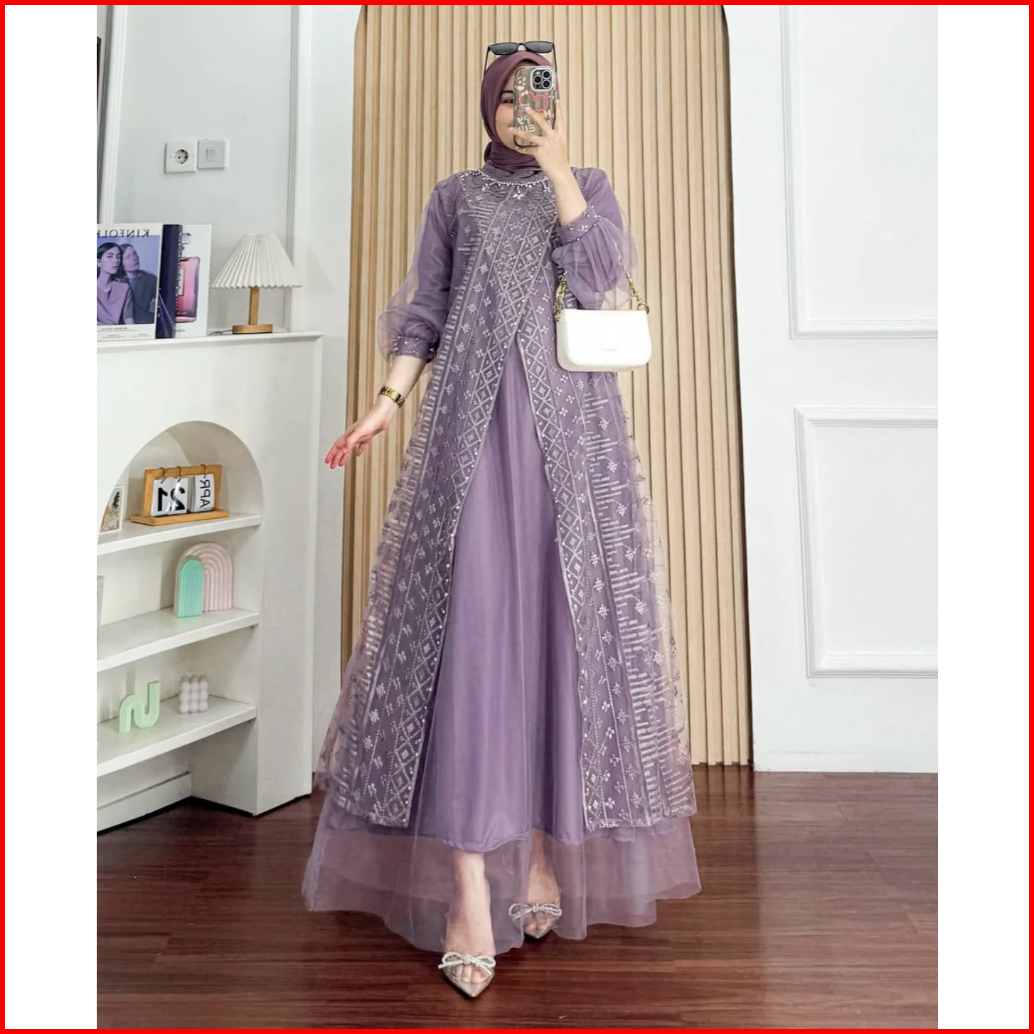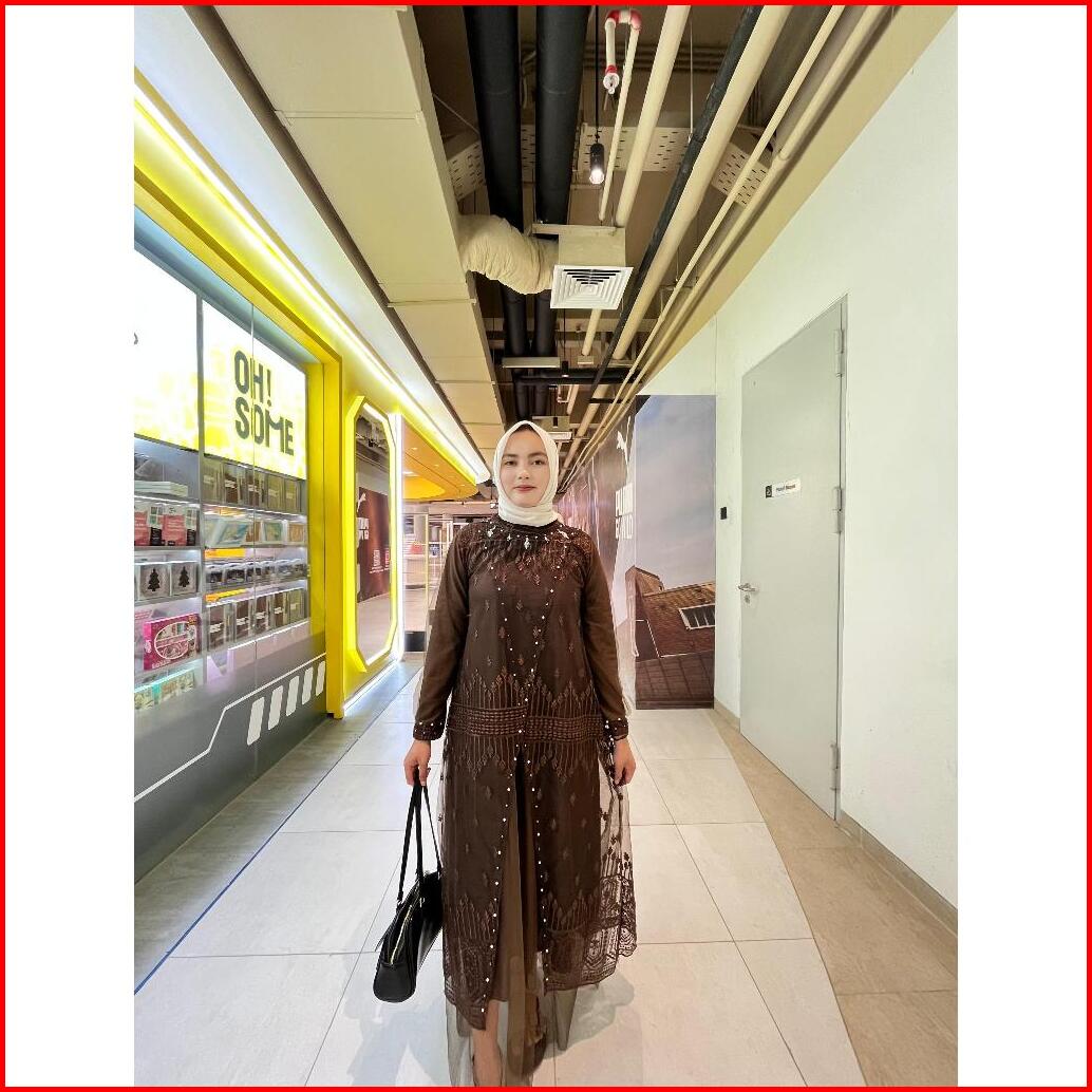 Terbaru Kayla Dress Pesta Tille Mix Brukat Full Puring Aplikasi Payet Mutiara Mewah Gamis Kondangan