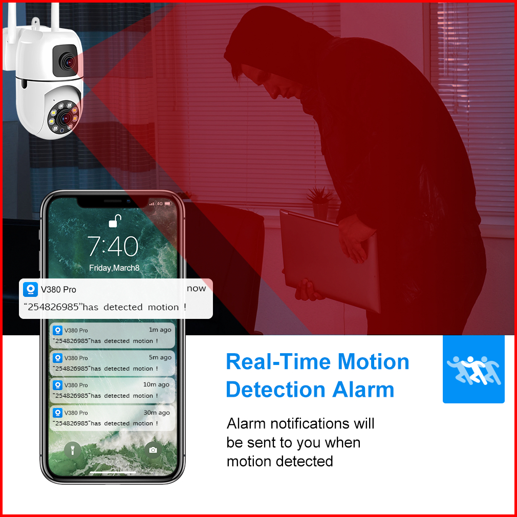 V380 Pro Y03pro 8mp Dual Lens Smart Camera 360 Deteksi Gerakan 2x Akurat Pengingat Real-time Privasi Terenkripsi Aman Un