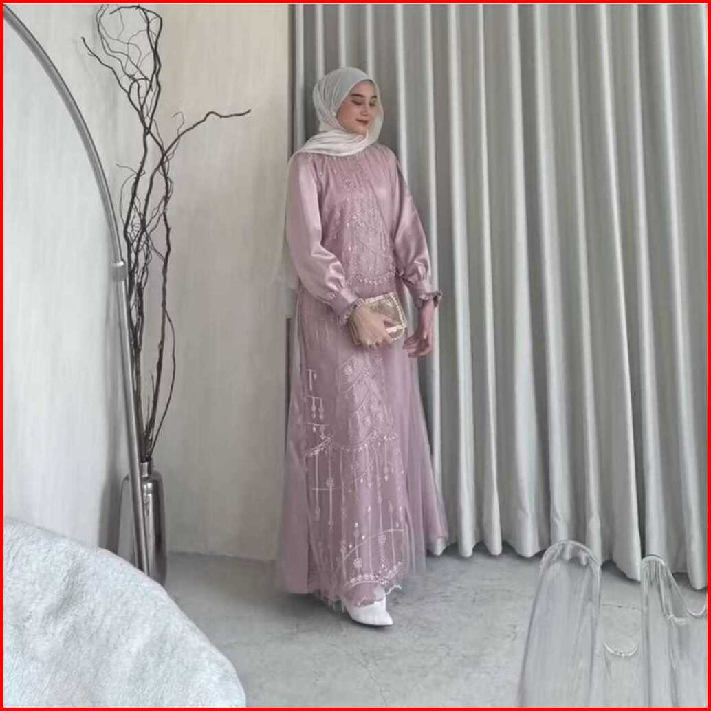 Gamis Kondangan Remaja Kinar Gamis Brokat Burgundy Premium Maxi Dress Pesta Exclusive Kekinian Laris