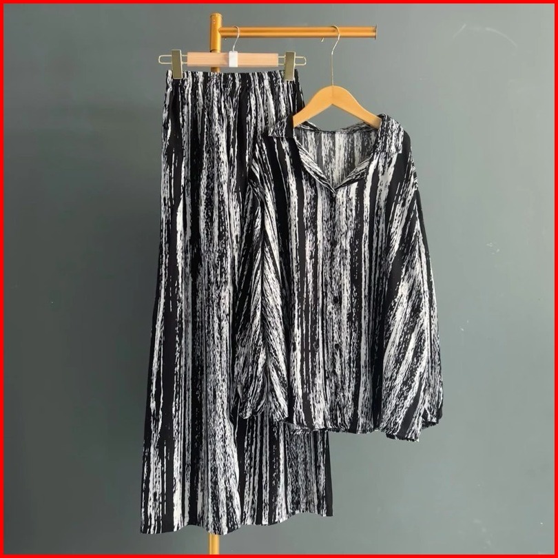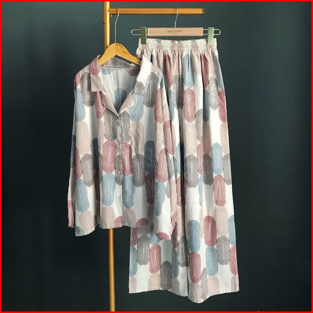 Setelan Kemeja Rayon Motif Kekinian Dan Celana Kulot Hommy