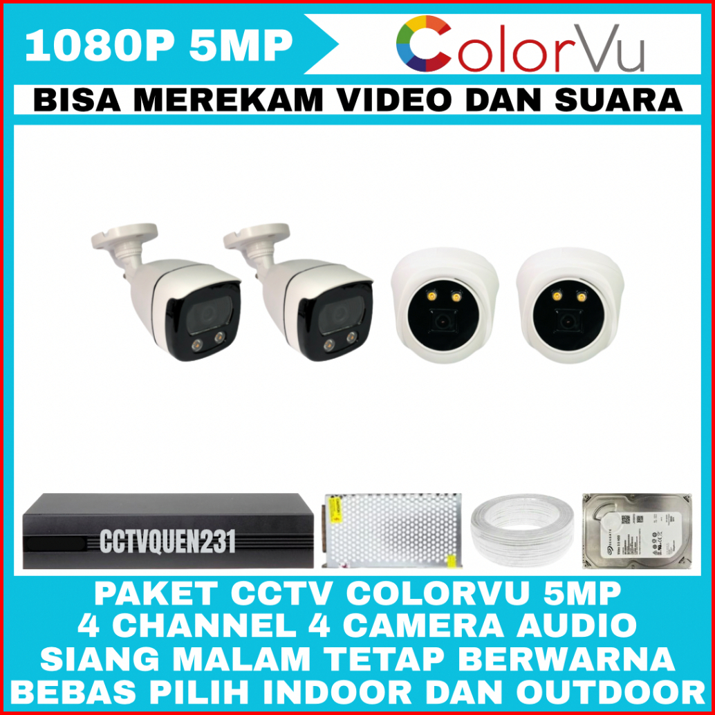 Paket Cctv Colorvu 5mp 4 Channel 4 Kamera Full Color Turbo Hd Audio 1080p Komplit