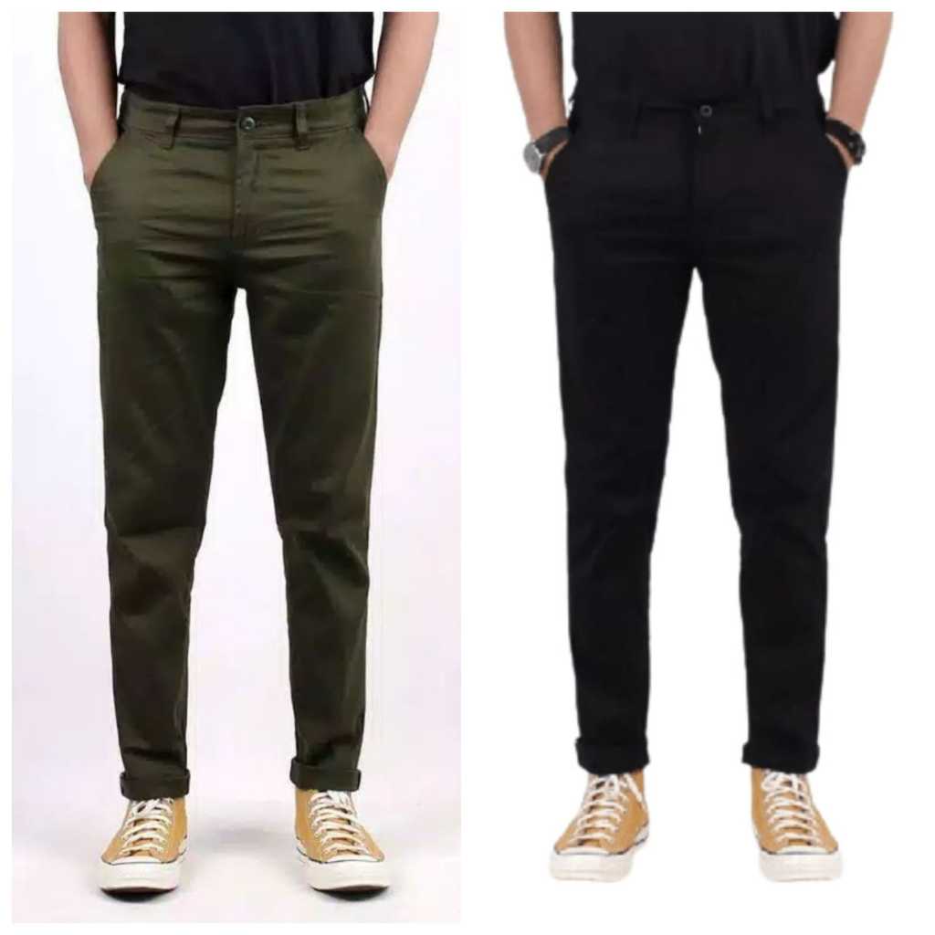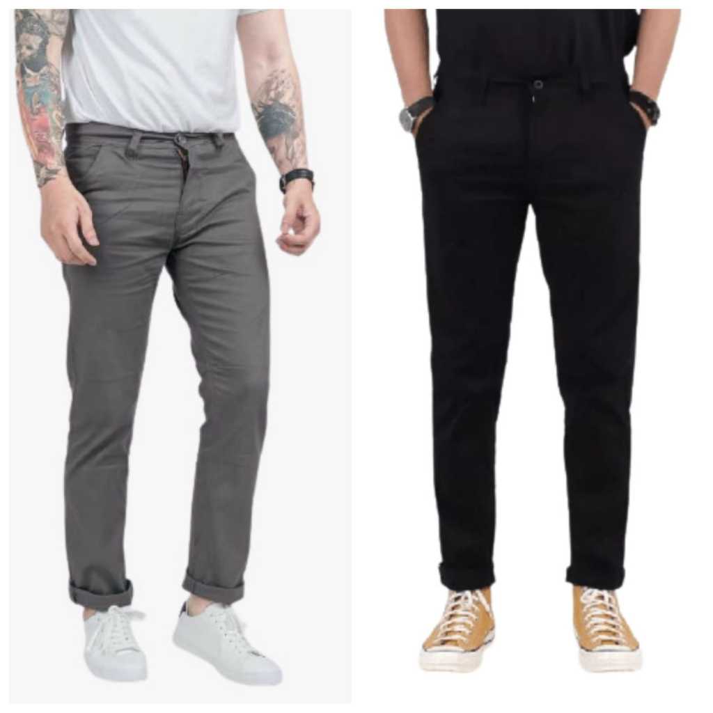 2PCS 90RIBU CELANA CHINO PANJANG SLIM FIT BAHAN COMBED MELAR PRIA D3W4SA