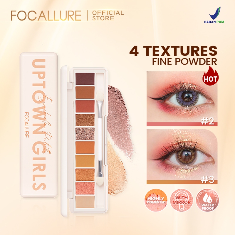FOCALLURE Waterproof Eyeshadow Palette Matte Shimmer with Mirror Brush 10 Colours FA158