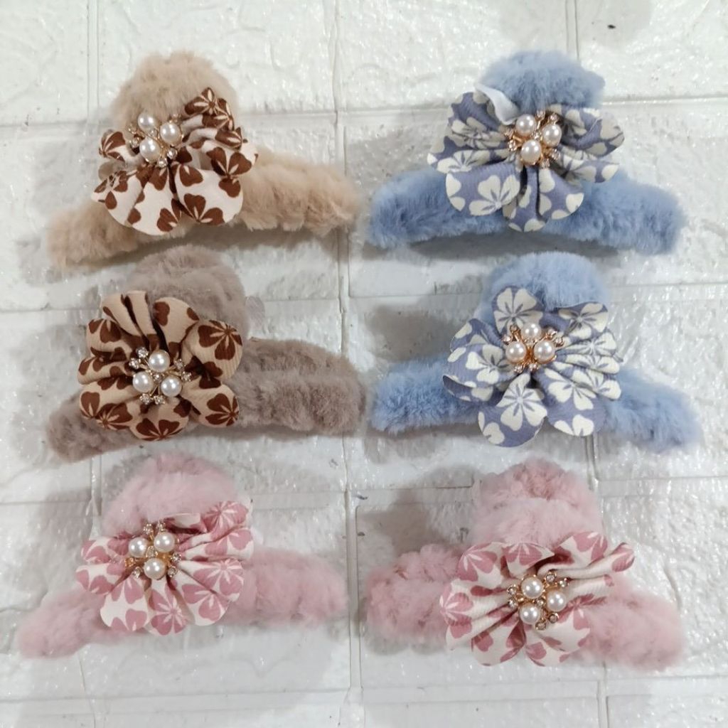 Jepit rambut/jepitan salon rambut bulu halus bentuk T aneka motif isi 12 pcs
