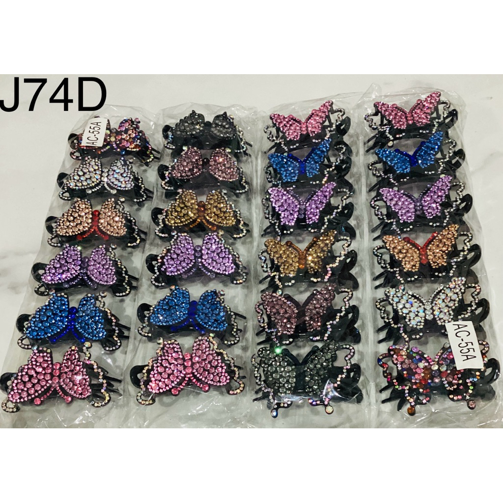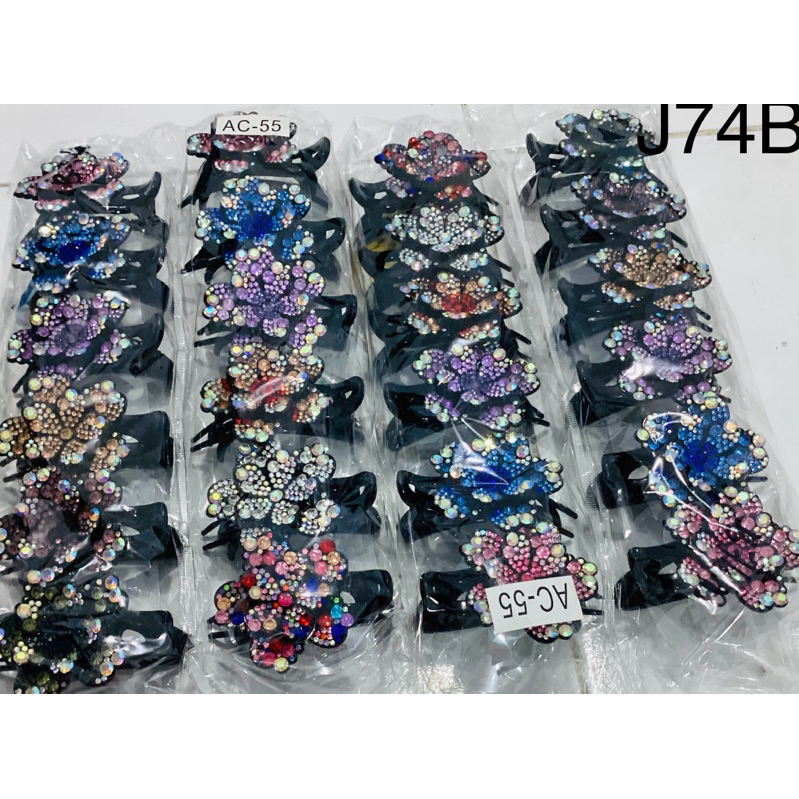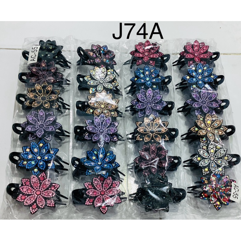 LUSINAN J74 Jedai motif bunga dengan hiasan batu permata rainbow isi 12pcs