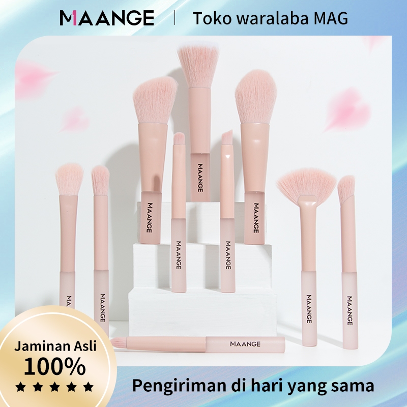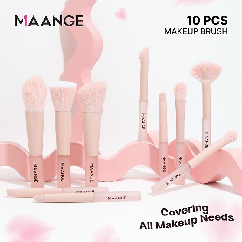 MAANGE 10Pcs Kuas Make Up Matte Pink Brush Makeup Set Multifungsi Travel Portable Kuas Bedak Blush Kontur Profesional Lengkap