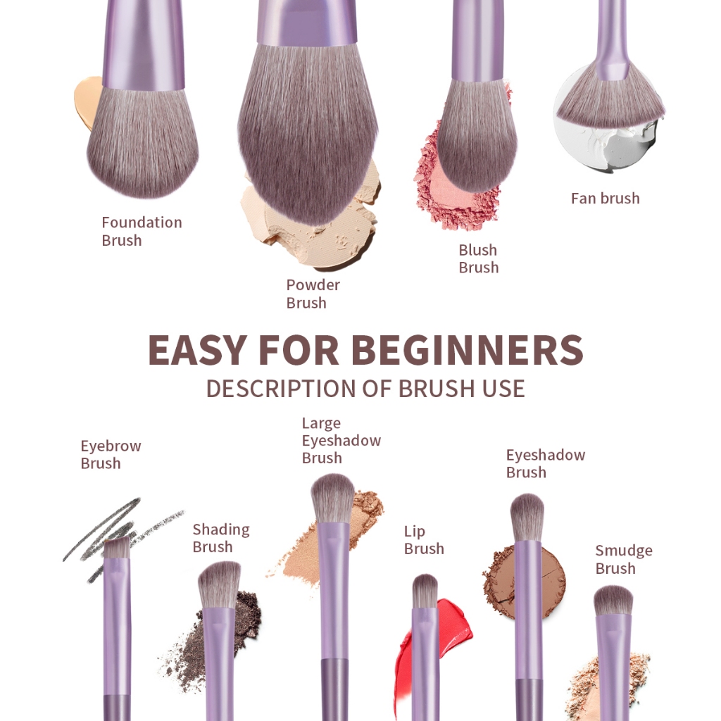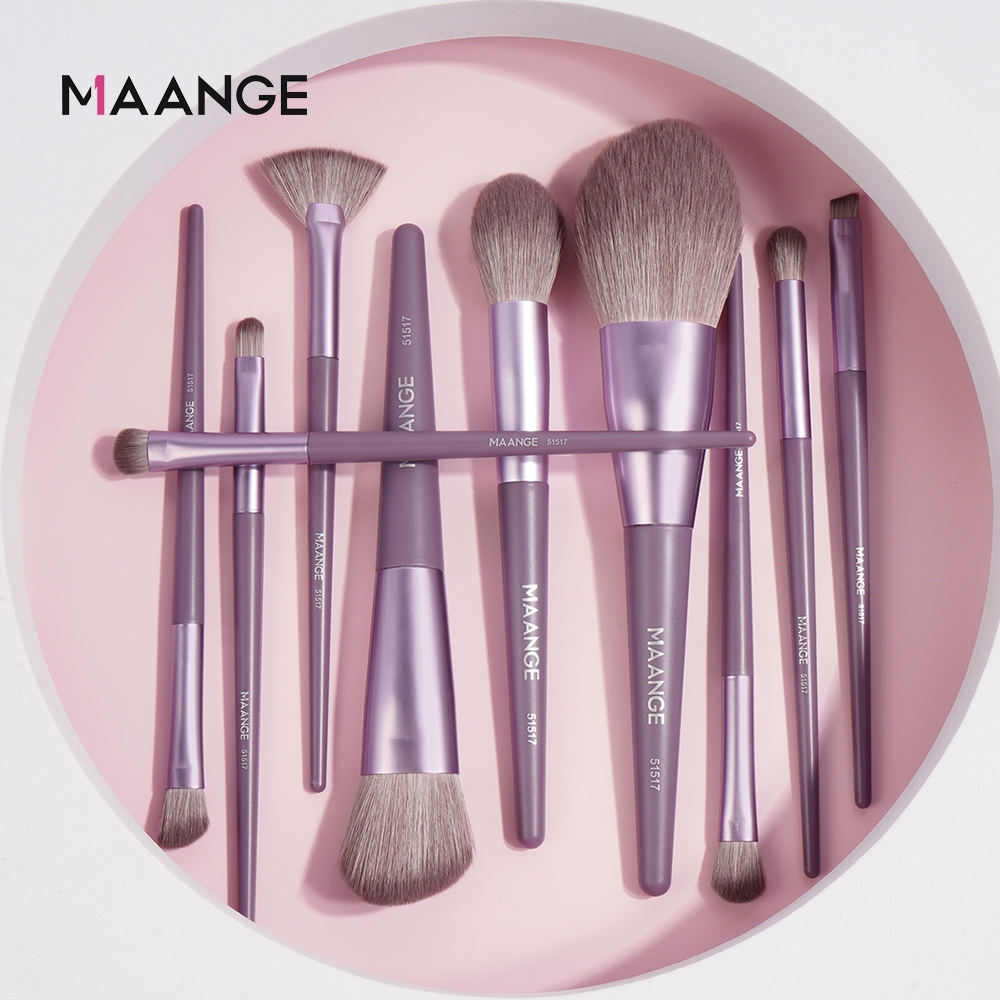 MAANGE 10Pcs Set Kuas Rias Profesional Ungu Ramah Kulit Multifunctional Facial Makeup Brush Eyeshadow Brush Nose Shadow Brush 51517