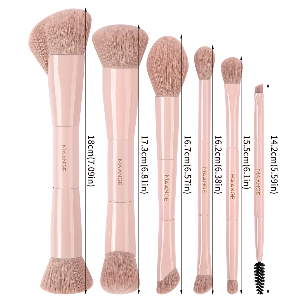 MAANGE 6Pcs Double Head Makeup Brush Set Kuas Makeup Perjalanan Peralatan Makeup Berkualitas Tinggi Dan Mudah Dibawa