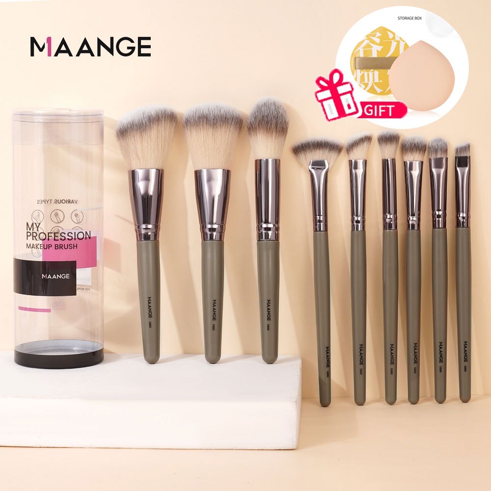 MAANGE 9Pcs Kuas Make Up Brush Set Kuas Blending Powder Blush On Kuas Concealer Eyeshadow Brushes Kecantikan Lembut Dengan Kotak Penyimpanan 5886