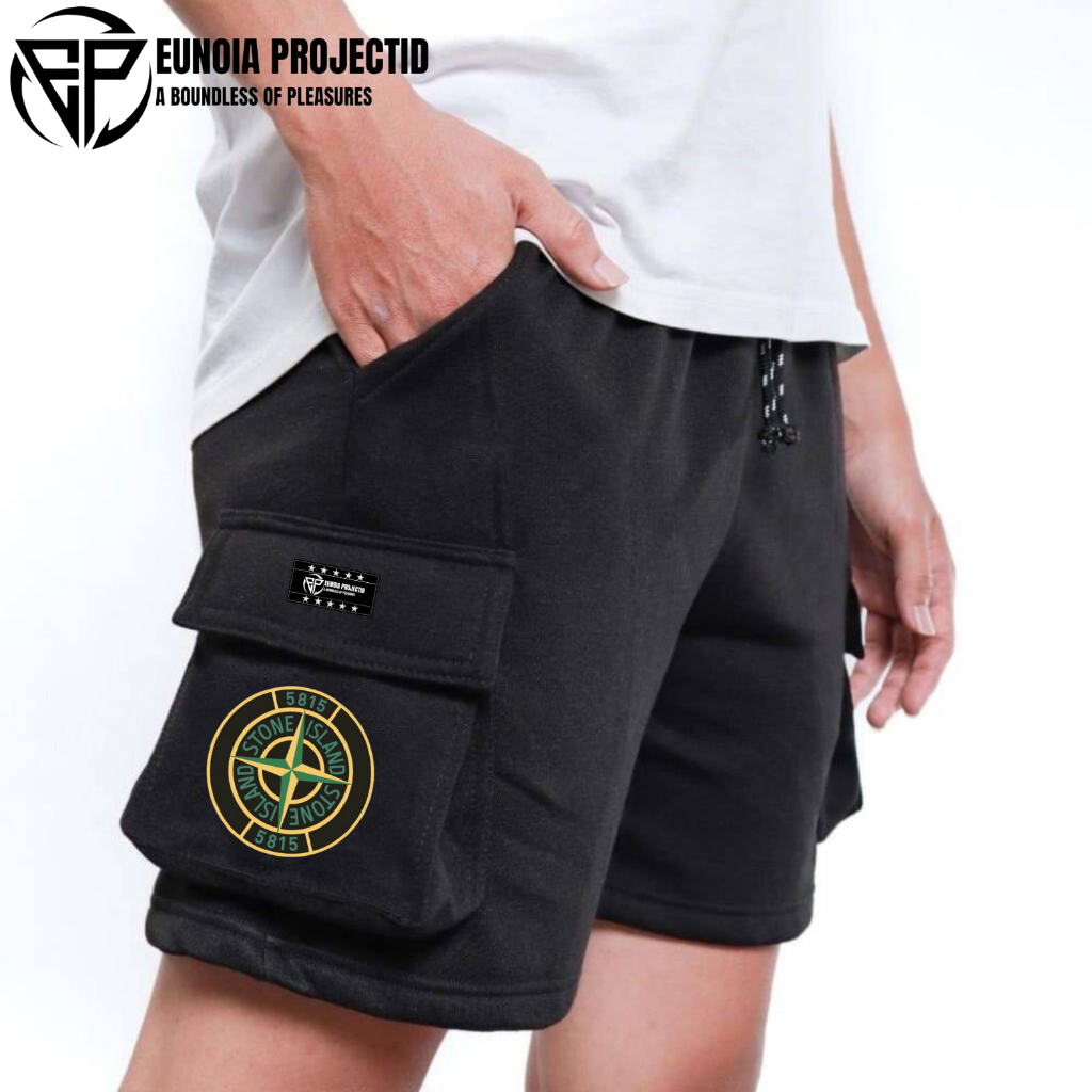 Celana Pendek Cargo Fleece 280 Bahan Lembut Adem Warna Hitam Sablon Stn Isln Celana Cargo Pria