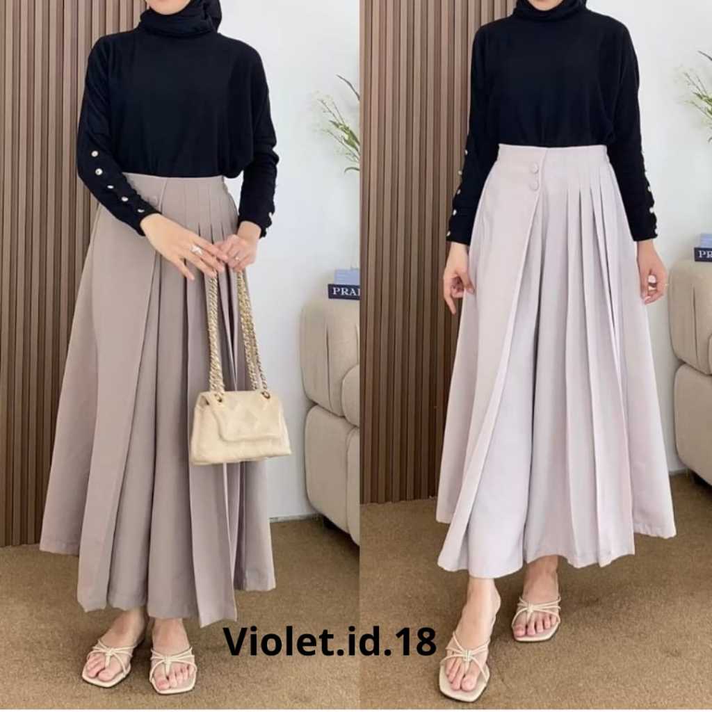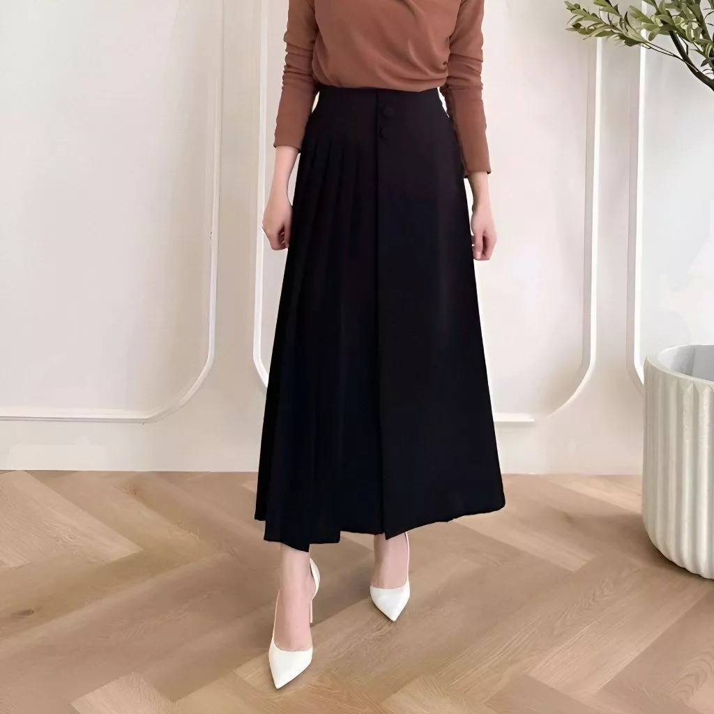 Celana Kulot Rok Wanita Kekinian Husna Kancing 2 Highwaist Premium Jumbo Mayung