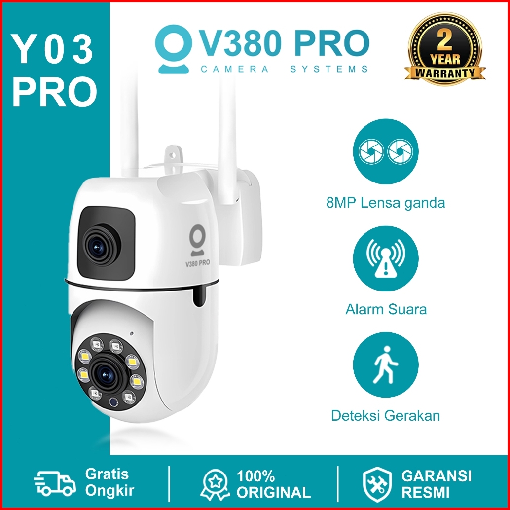 V380 Pro Y03pro Dual Lens Smart Indoor Cctv Wifi Jarak Jauh Kamera Tampilan Penuh 360 Pelacakan Otomatis Garansi 2 Tahun