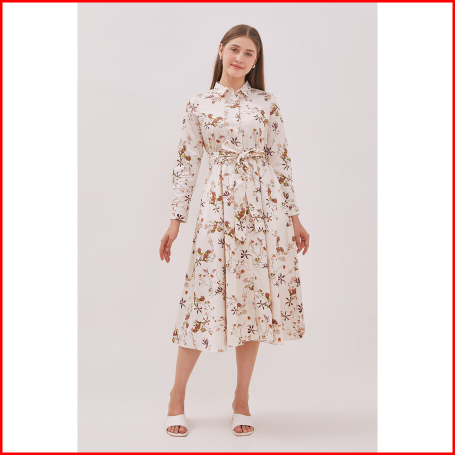 Minimal - Garina - Dress Maxi Wanita Motif Bunga - Beige