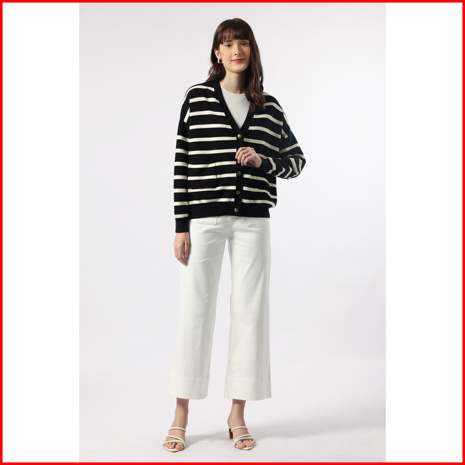 Minimal - Saturn - Cardigan Rajut Wanita Motif Garis - Black