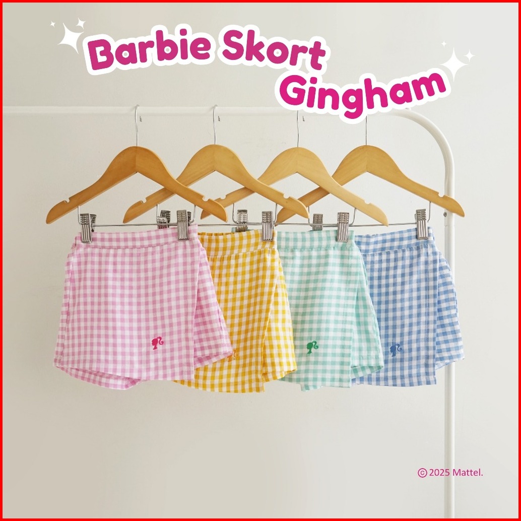Barbie X Minicottons Girls Skort Gingham Rok Anak Perempuan 2-12 Tahun