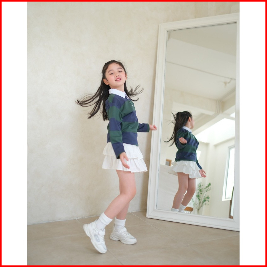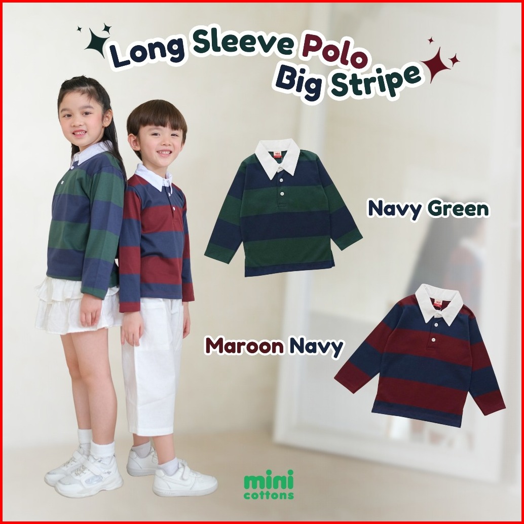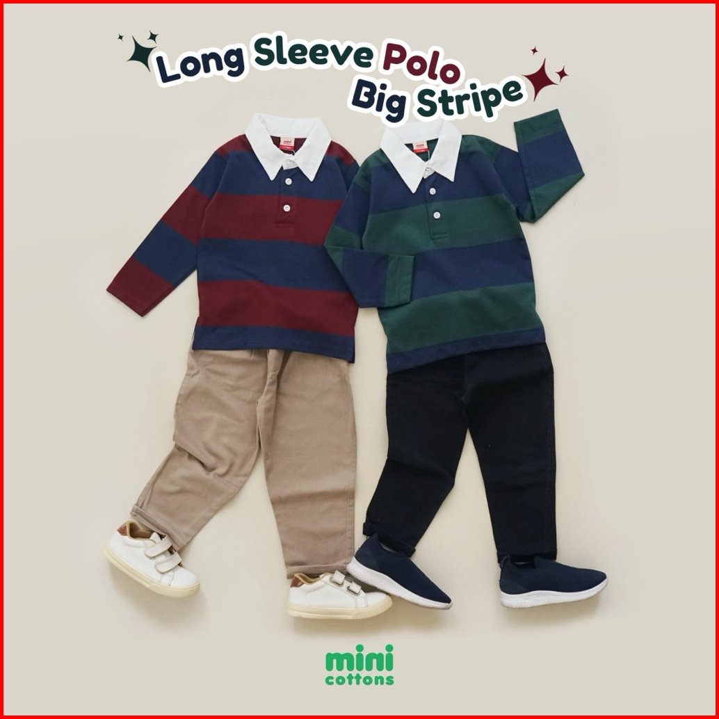 Mini Cottons Long Sleeve Polo Big Stripe Tshirt Lengan Panjang Polo Salur Anak 1-12 Tahun