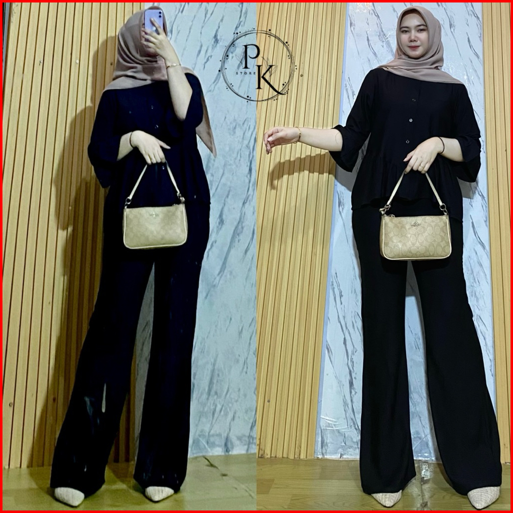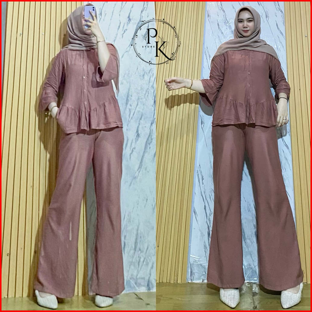 Oneset Rayon Twill - Luna Set Celana Rayon Polos Oneset Wanita Busui Oneset Rempel