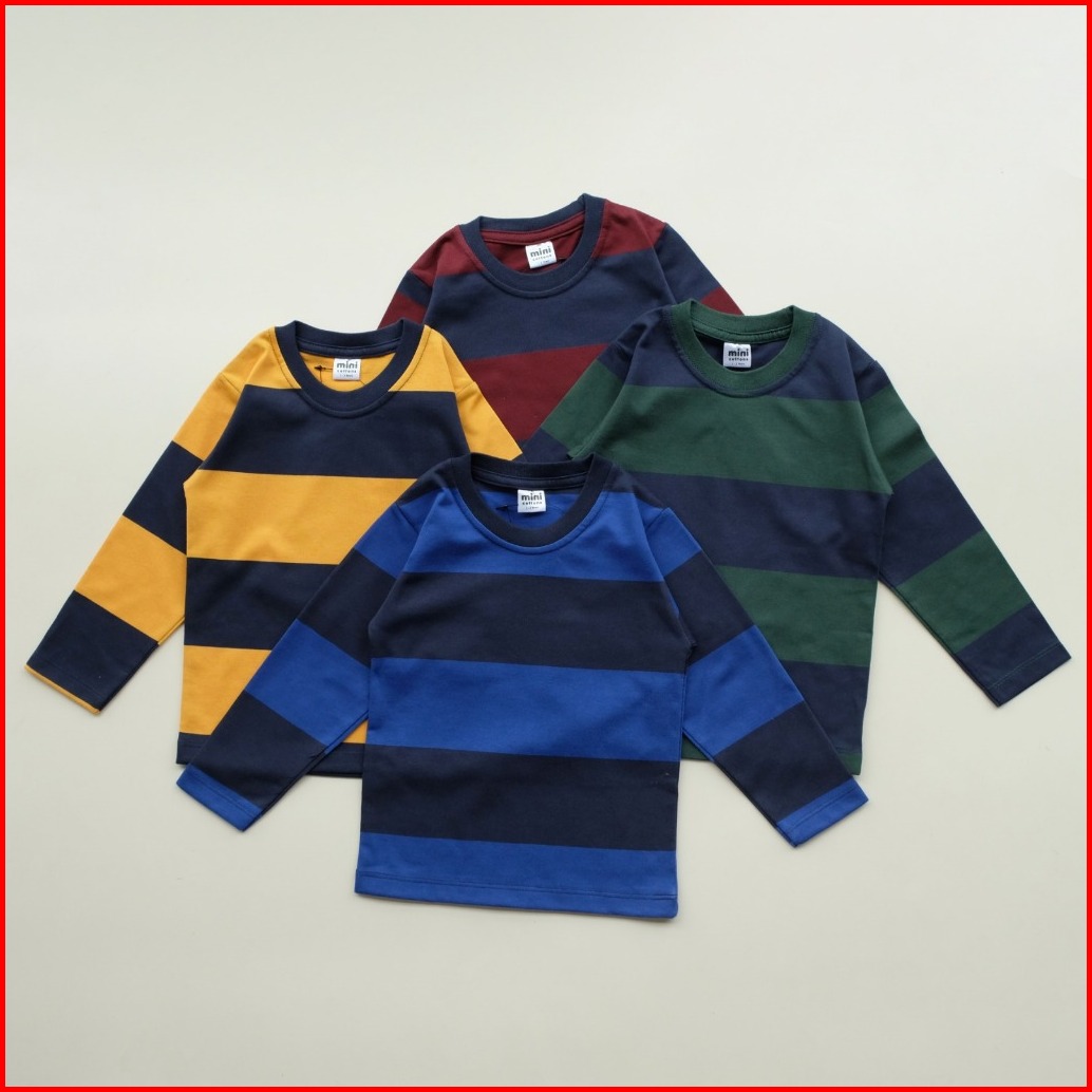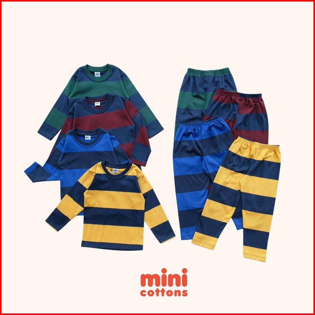 Mini Cottons Piyama Anak Salur Besar Mustard Navy Setelan Baju Tidur Anak Stripe 1-12 Tahun