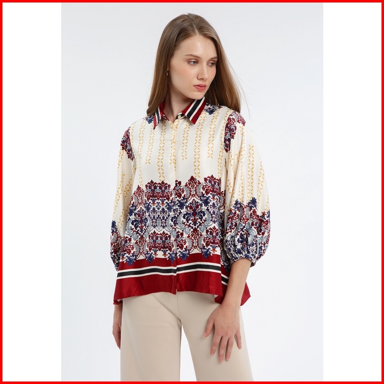 Minimal Marina Blouse Wanita Warna Beige Mix