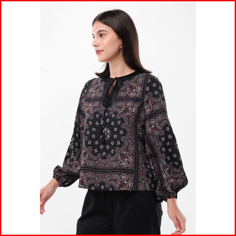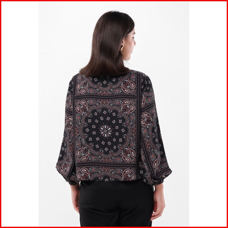 Minimal Carla Blouse Wanita - Motif Paisley - Warna Black Hitam