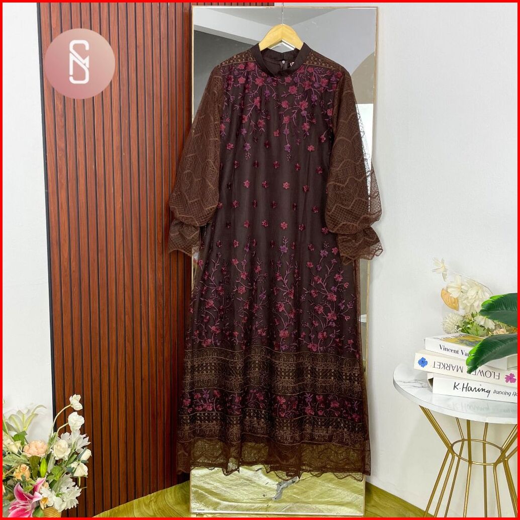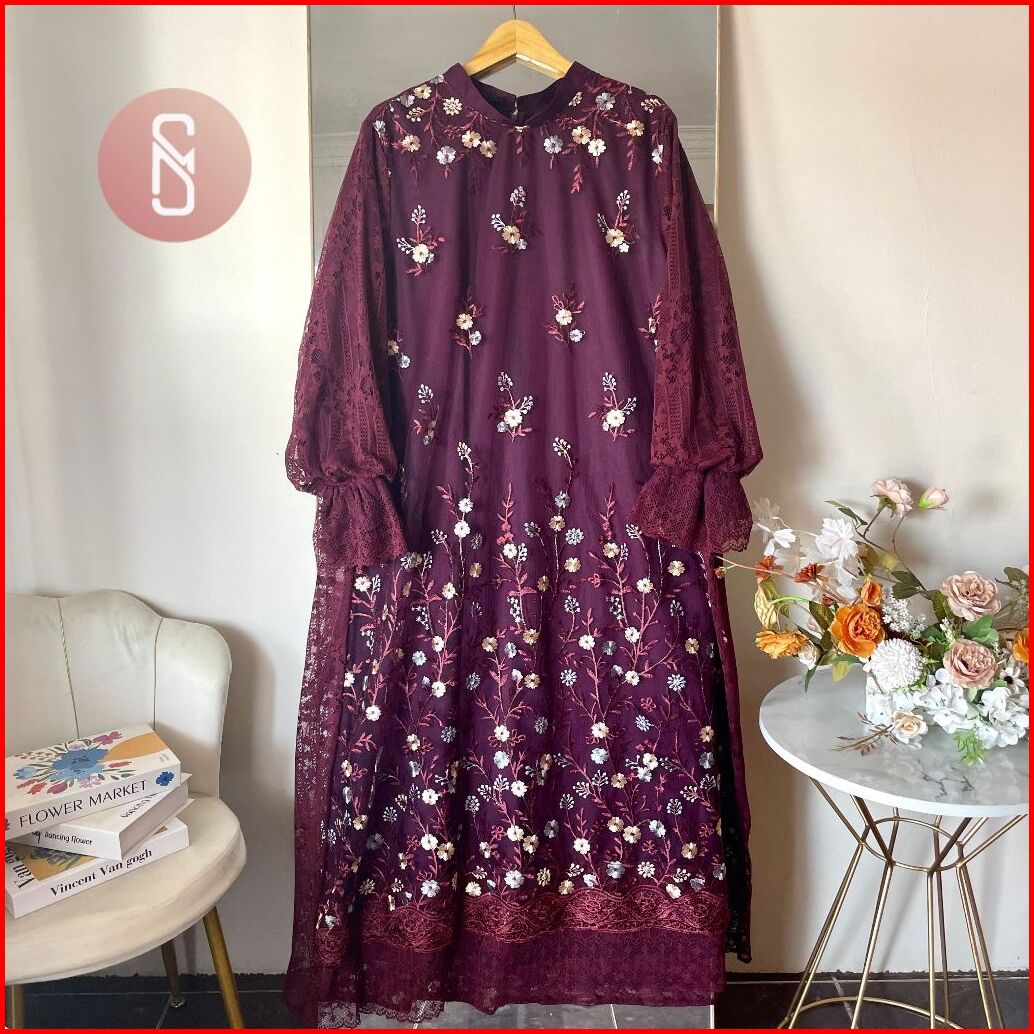 Virani Myshawl Gamis Jumbo Brukat Motif Kasual Kondangan Wisuda Kekinian Big Size Brukat Bunga Jumbo Dayana