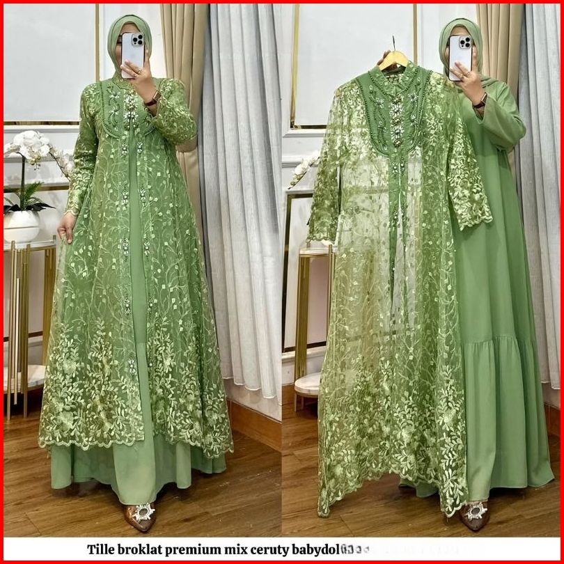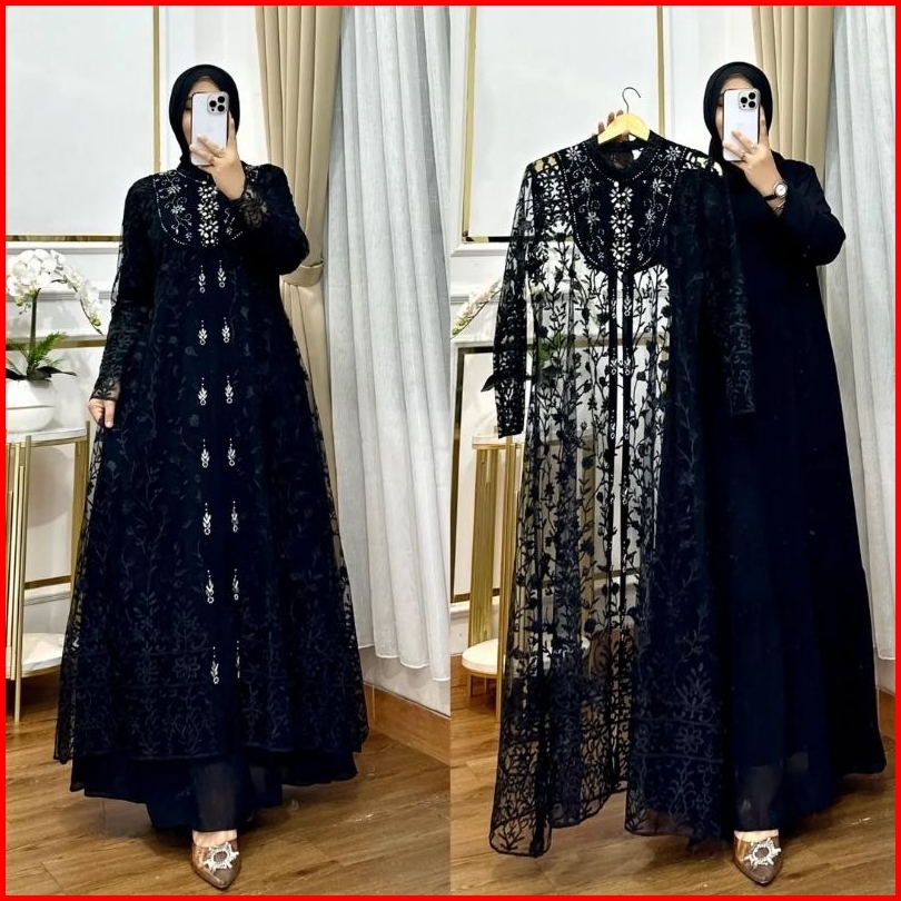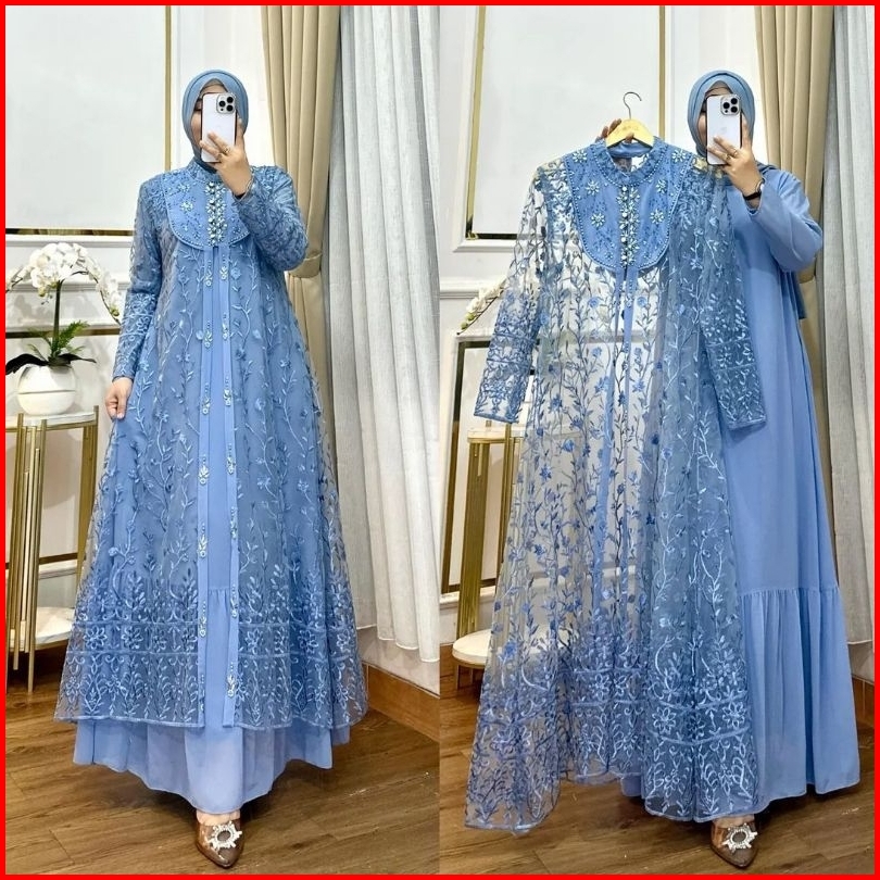 Gamis Set Outher Terpisah Full Brukat Payet Gamis Burgundy Asmara Set Dress Mewah Elegan