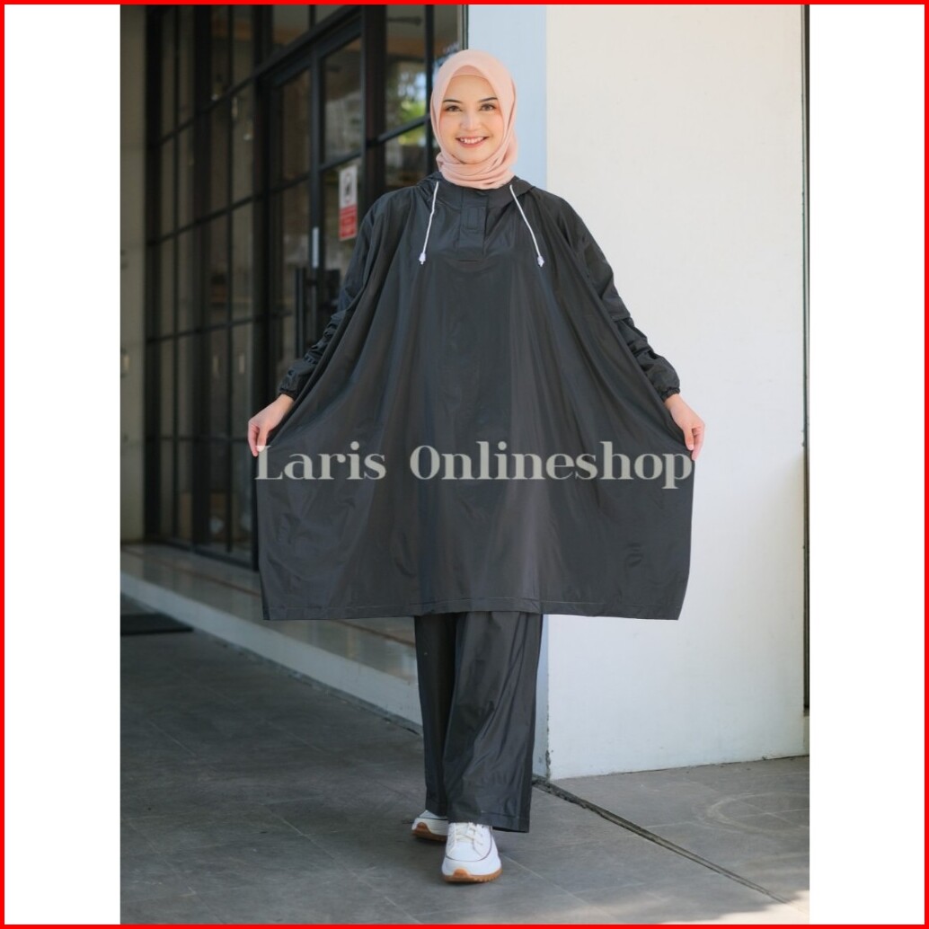 Ganendra Jas Hujan Ponco Lengan Celana Plevia Warna Hitam Maroon Dongker Laris Onlineshop