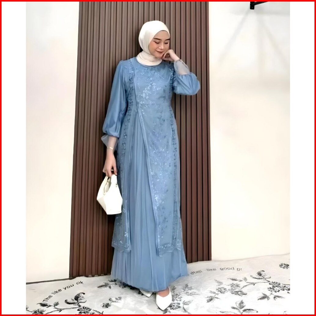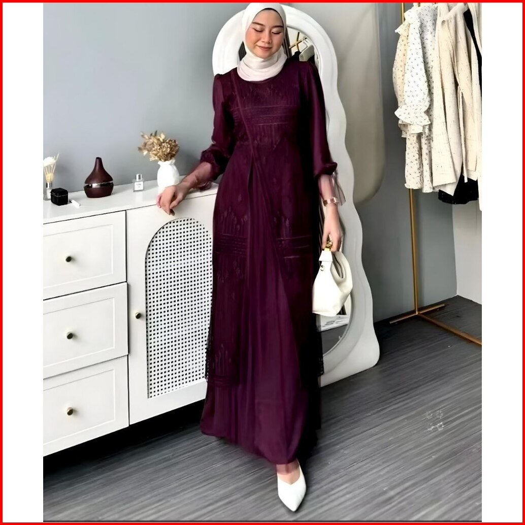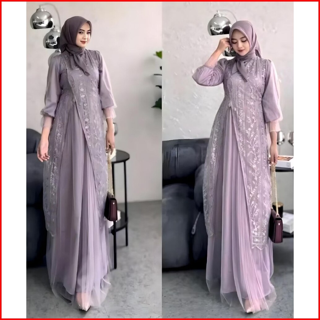 Maxi Kinar Dress Gamis Pesta Kondangan Seragam Bridesmaid Wanita Bahan Brukat Silk Tille Garden