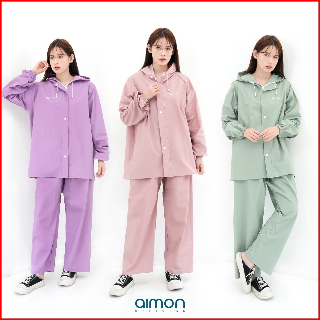 Aimon Jas Hujan Pria Wanita Tebal Warna Pastel Setelan Jaket Celana