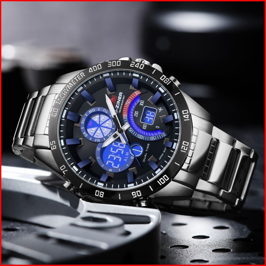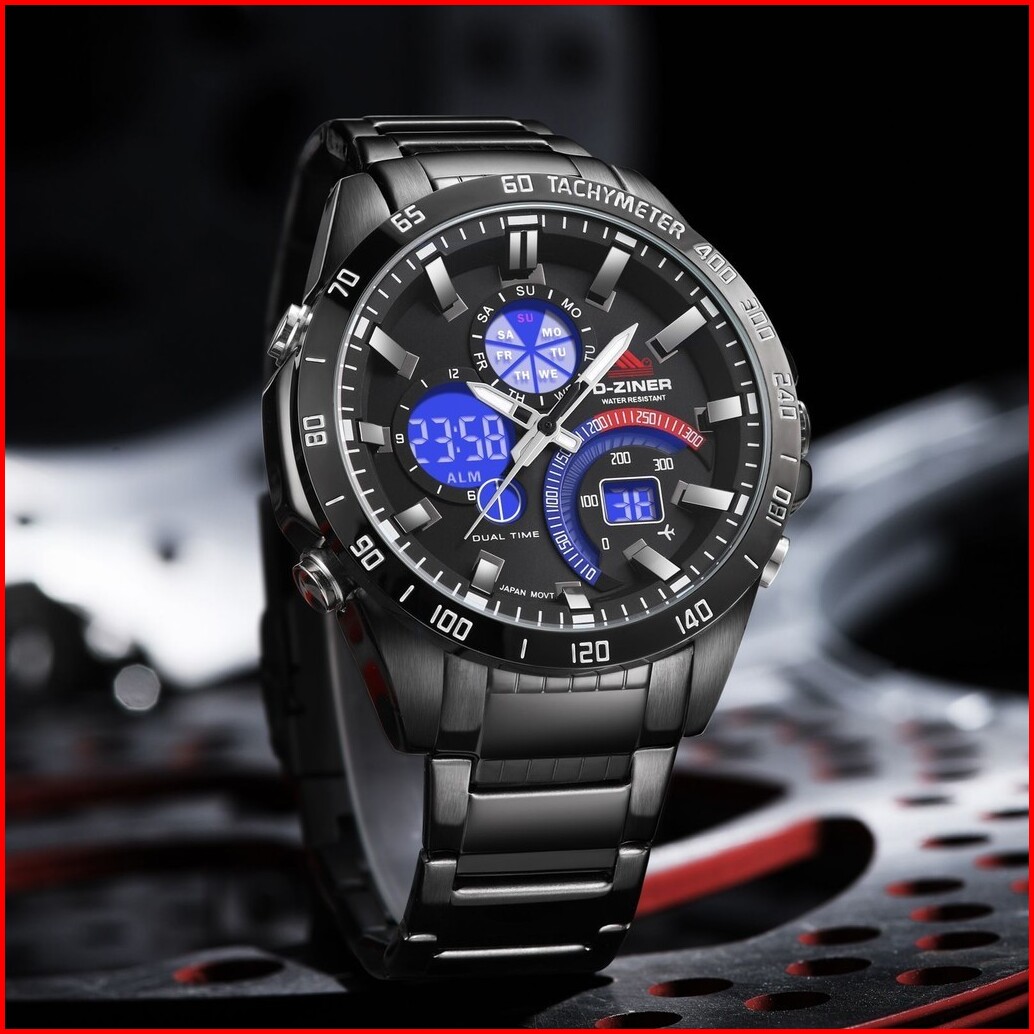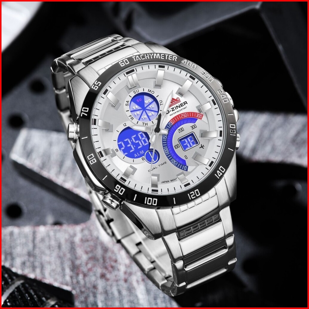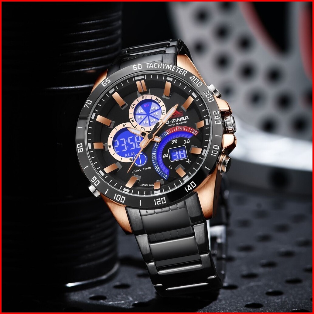 Dziner Jam Tangan Pria 8106 Rantai Stainless Steel Double Time Water Resistant 3 Atm Promo