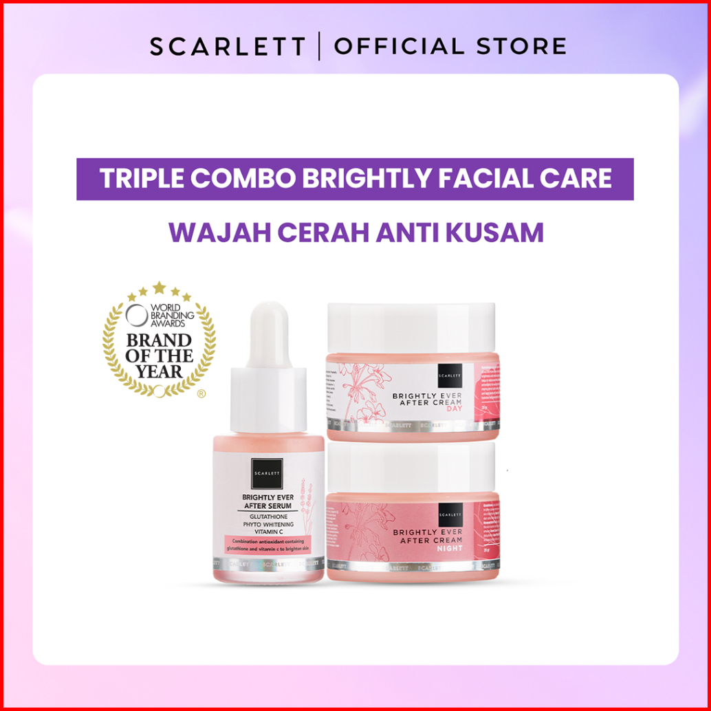 Scarlett Triple Combo Niacinamide Brightly Facial Care Paket Mencerahkan Wajah Menghilangkan Bekas Jerawat Wajah Glowing