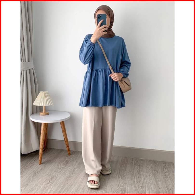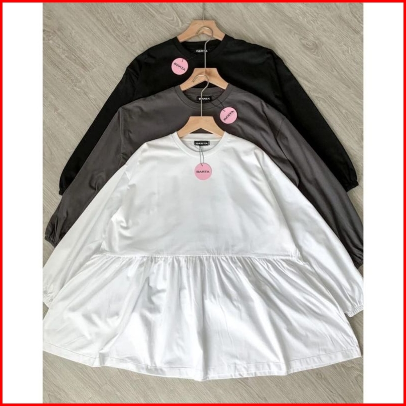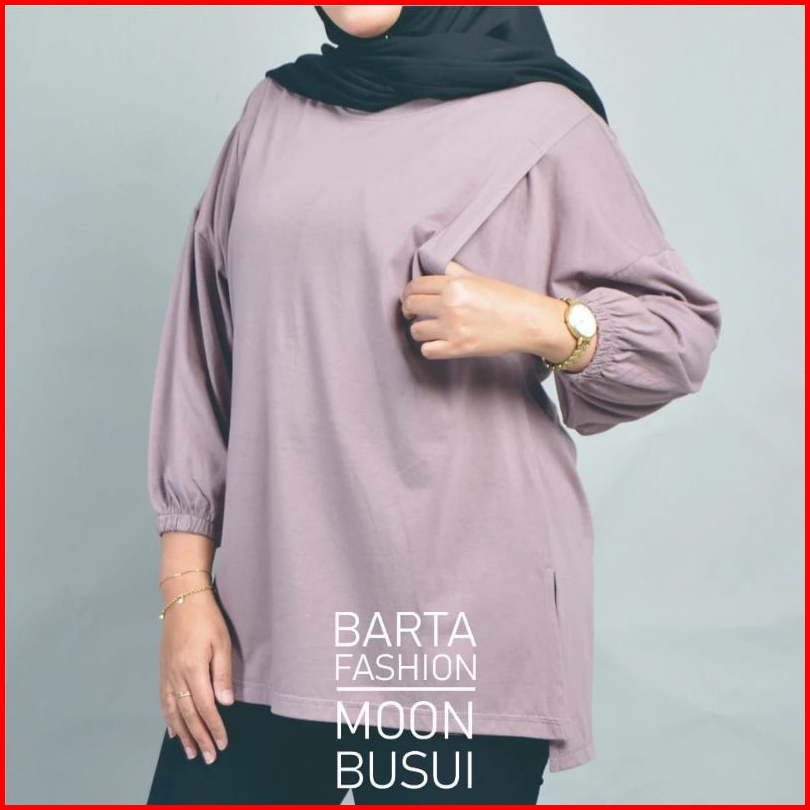 Moon Dan Ruffle Kaos Oversize Lengan Panjang Busui Friendly Bukaan Kanan Kiri Katun Combed 30s