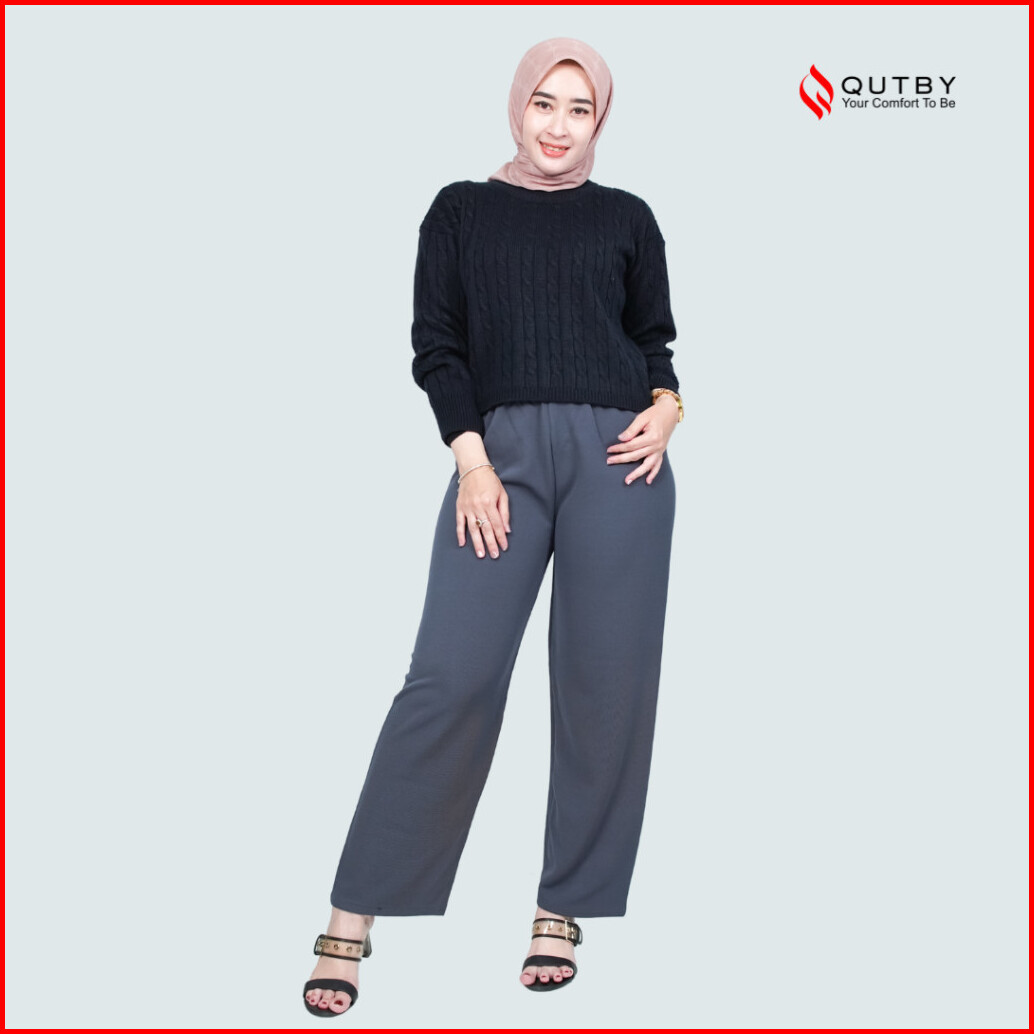 Qutby - Celana Yumi Knit Pants Jumbo Wanita Muat Bb 40-110kg