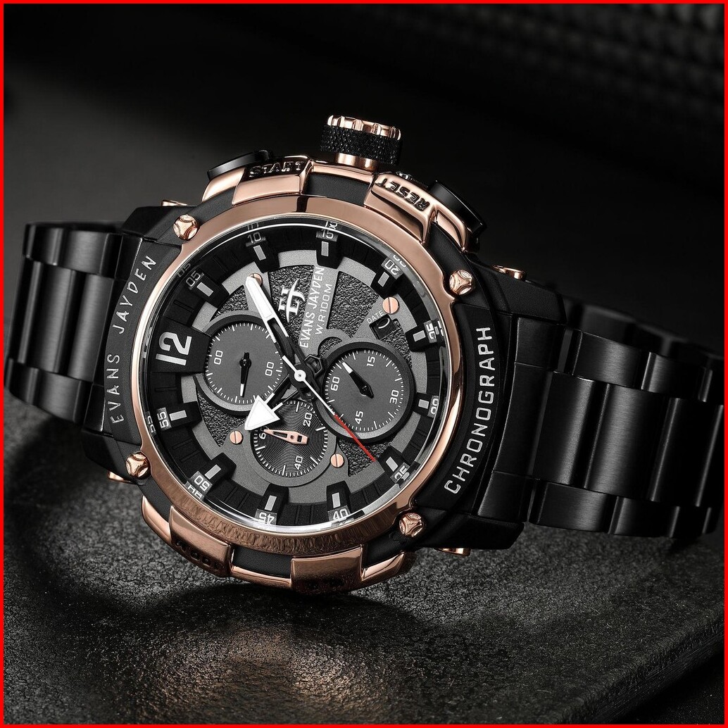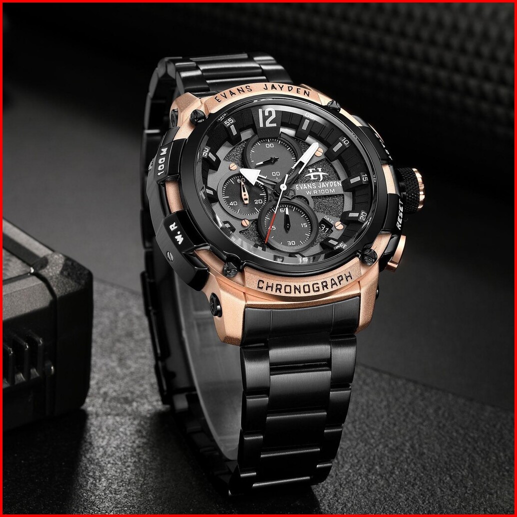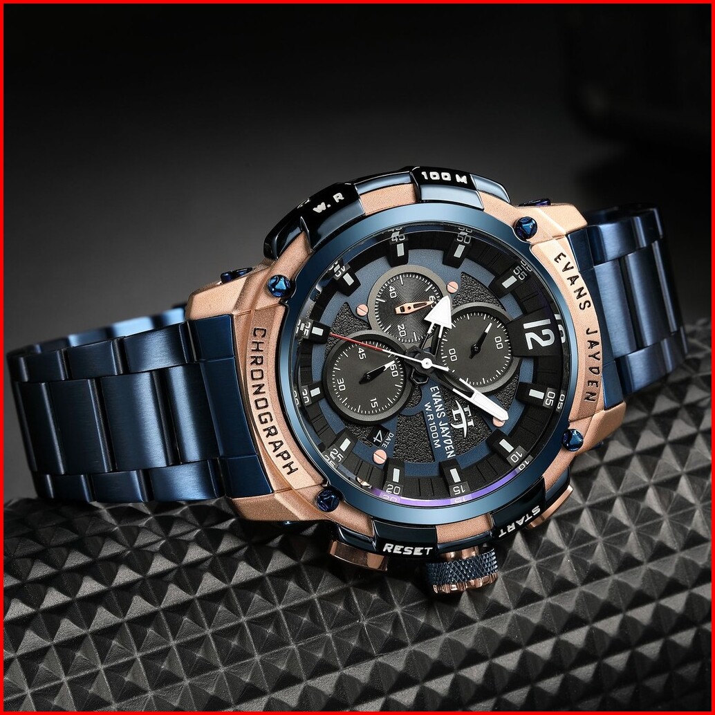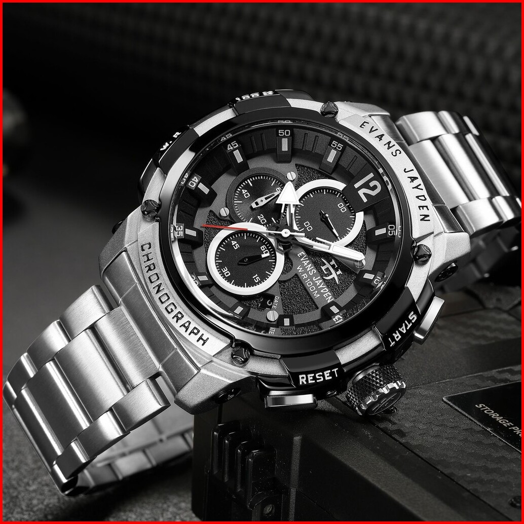 Jam Tangan Evans Jayden Jam Tangan Pria 9617 Rantai Stainless Steel Chronograph Kaca Sapphire Water Resistant 5atm