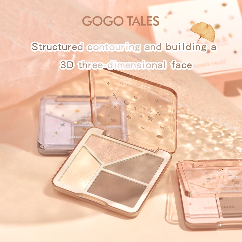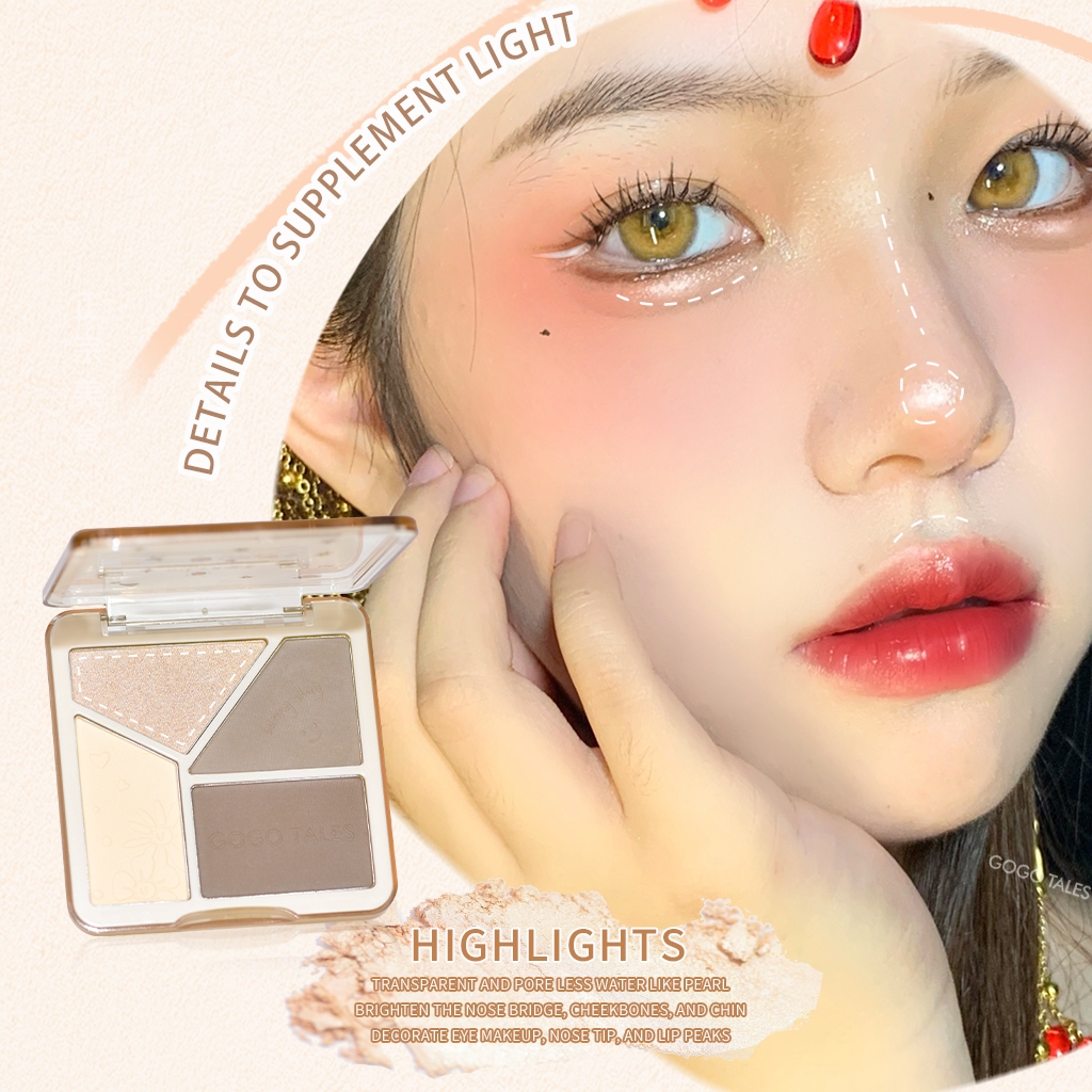 [BPOM]GOGO TALES contour dan highlighter palette nose shadow powder makeup wajah glowing look soft glitter silky 3D face matte shimmer finish cosmetic GT431