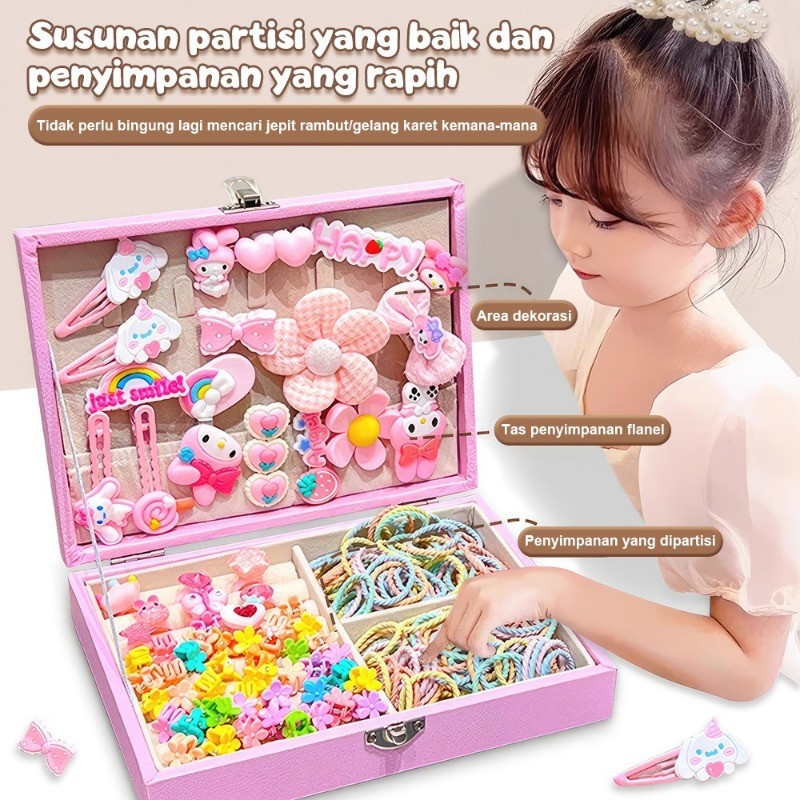 【Kotak Hadiah】163PCS Jepit Rambut Korea Set Anak Perempuan Ikat Rambut Lucu Jepitan Rambut Hair Pin Gaya Tahun Untuk Mainan Anak Perempuan