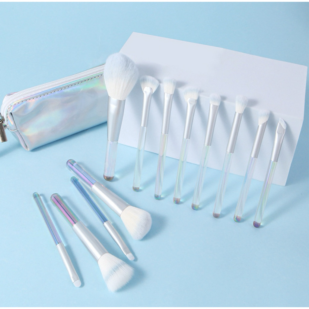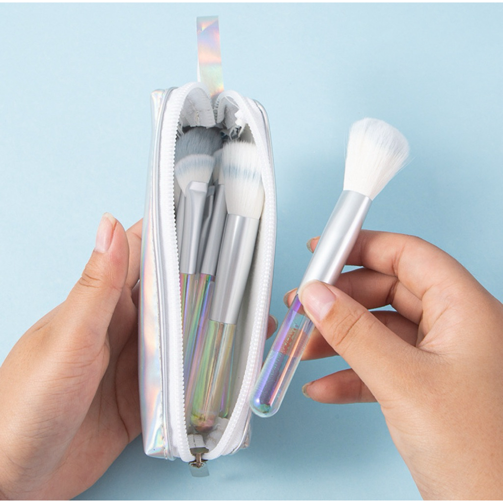 brush makeup travel set 12pcs dengan pouch cantik kuas alat make up kosmetik portable - MUA6