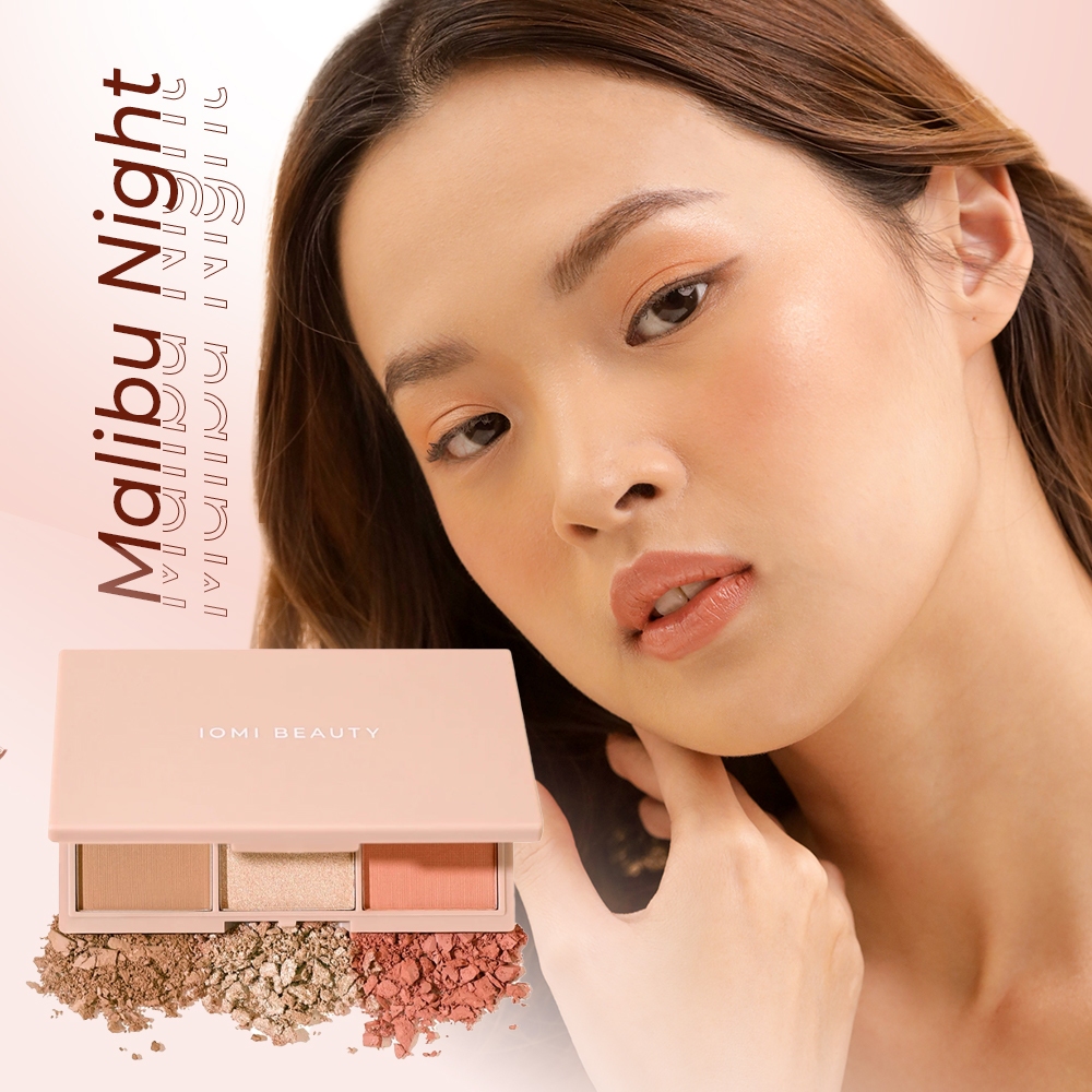 IOMI Beauty - 3 in 1 Face Palette (Bronzer, Highlightter, & Blush) Makeup Korea Daily Makeup High Pigmented Longlasting Glow Glitter Face Palette easy to blend