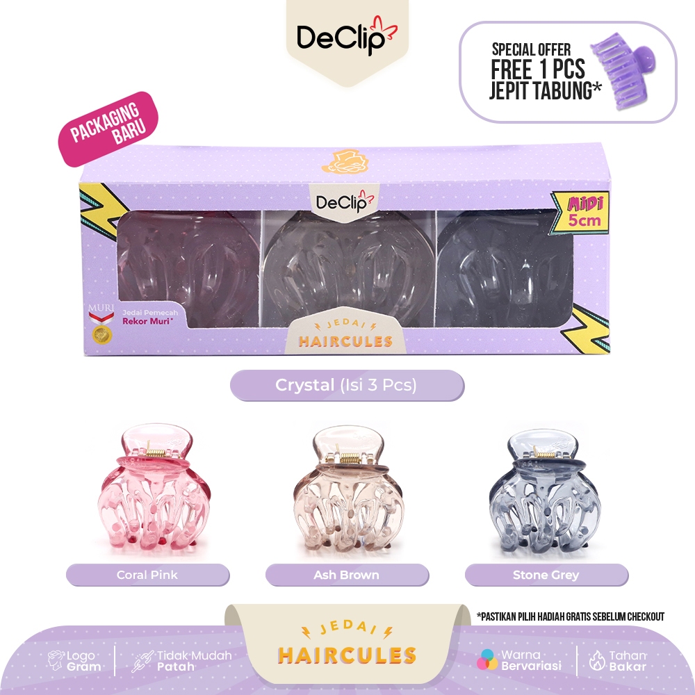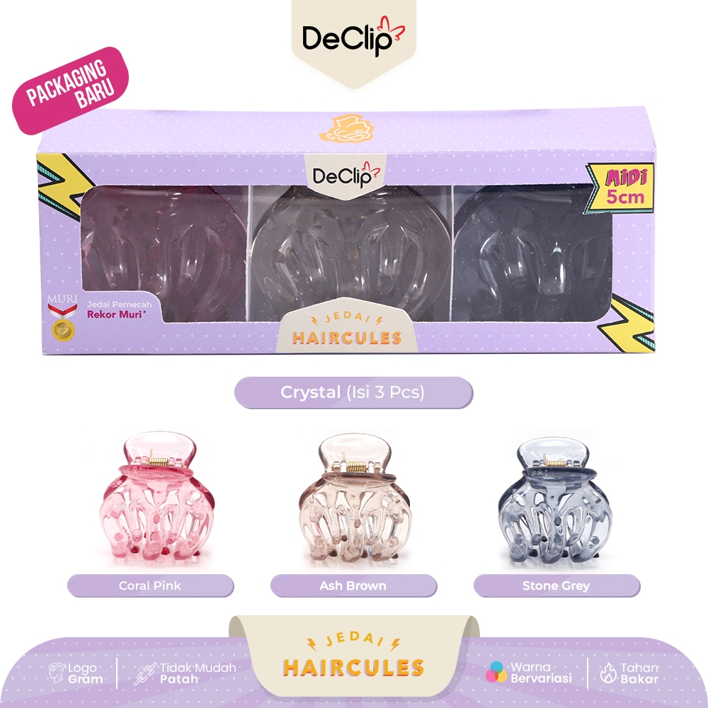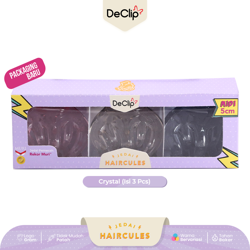 Jedai Haircules Declip Original Gigi 5 ukuran 5cm Warna Crystal (isi 3pcs)