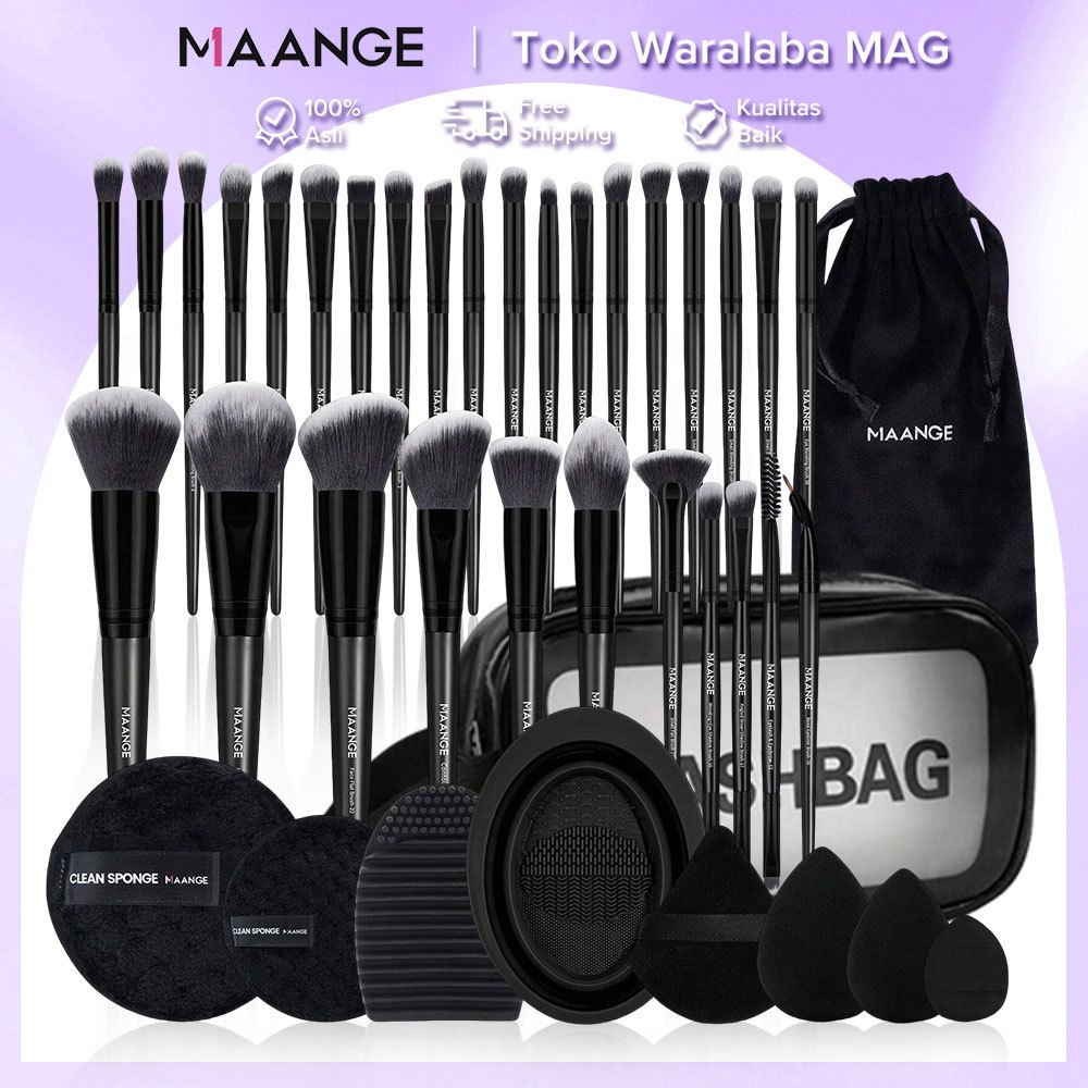 MAANGE 30pcs Lengkap Dengan Kuas Makeup Set Tas Kuas + Washbag Protable + Pembersih Brush + Lembut Makeup Spons 51638