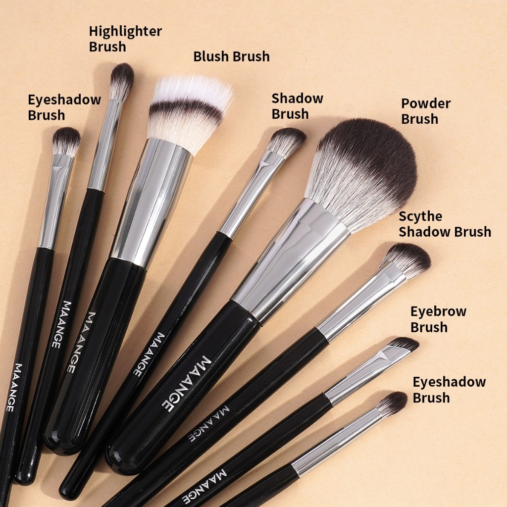 MAANGE 8Pcs Brush Makeup Set Dan Tas Lembut Kuas Bedak Besar Kuas Eyeshadow Portable Kuas Rias 52185