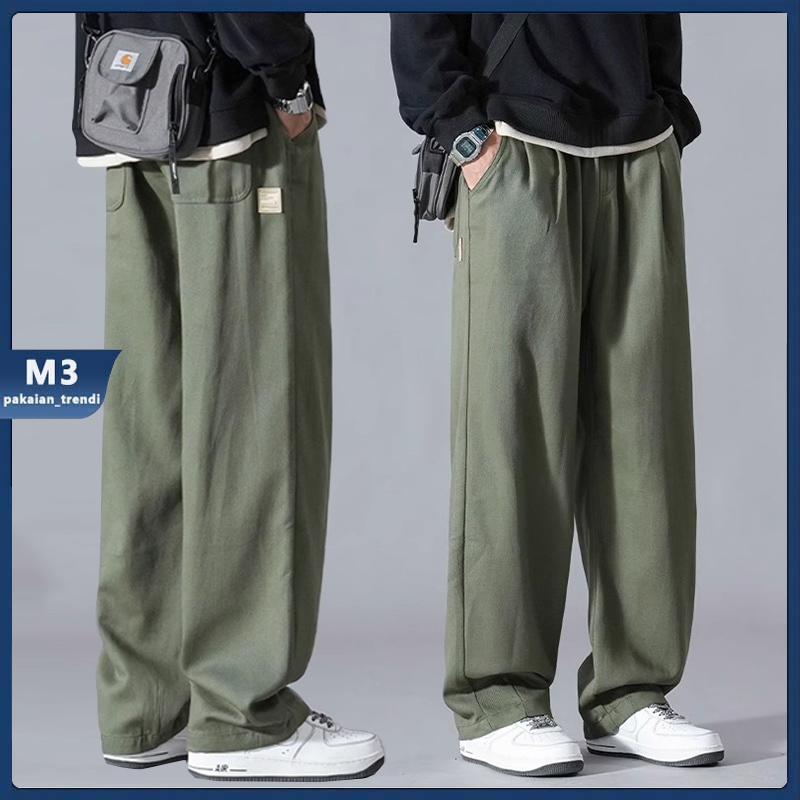Cargo Pants Pria Celana Cargo Korean style Panjang Pria Celana Joger Pria Celana Olahraga Pria Ukuran Besar Lurus Longgar dan Drapey Baru, Celana Kasual Kaki Lebar