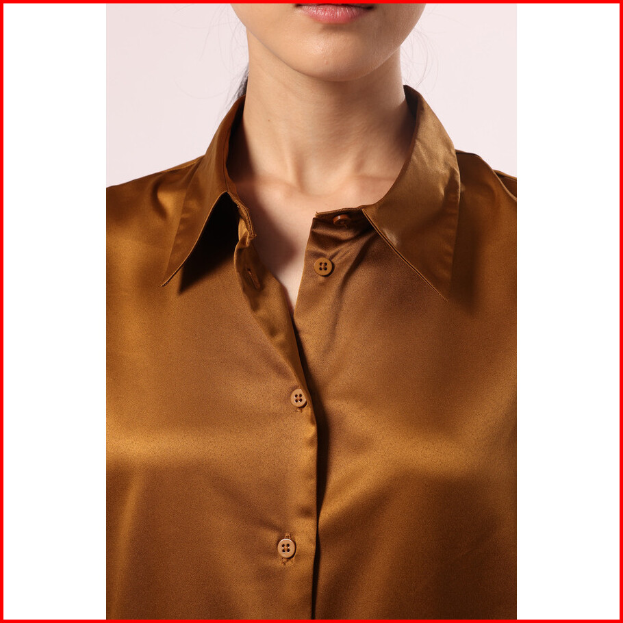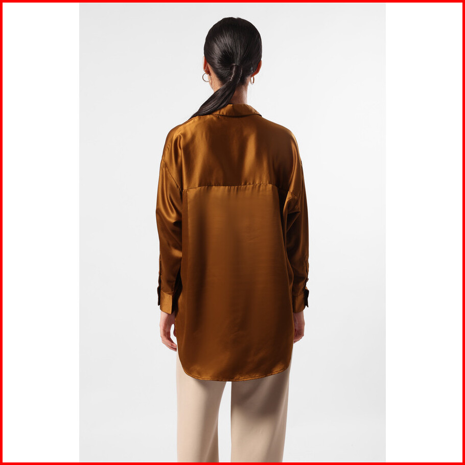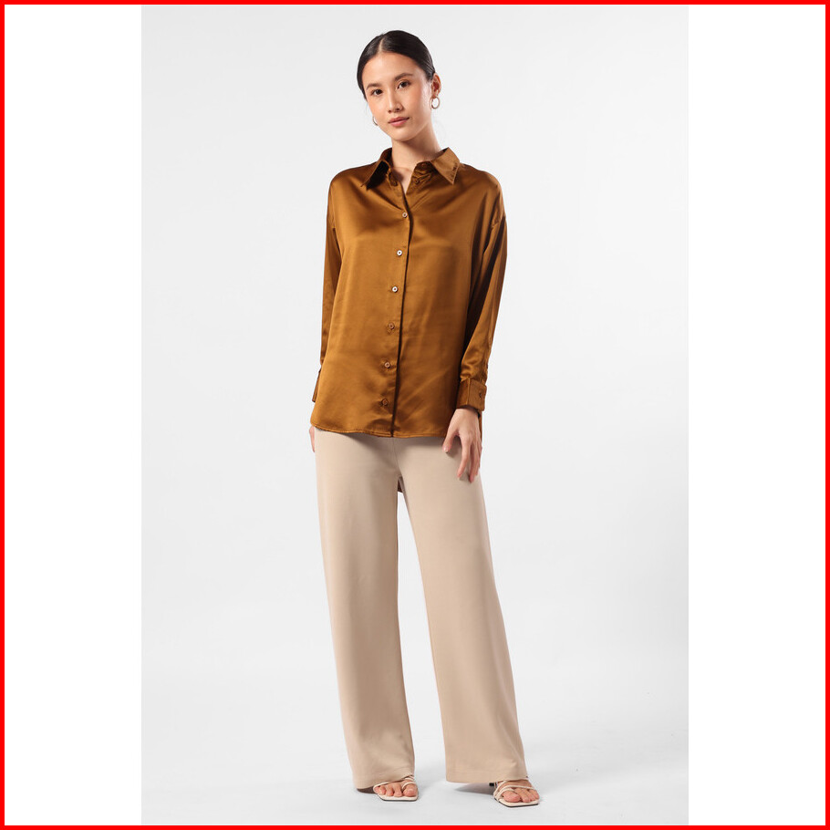 Minimal - Nourra - Kemeja Satin Relaxed Fit Wanita - Dark Olive
