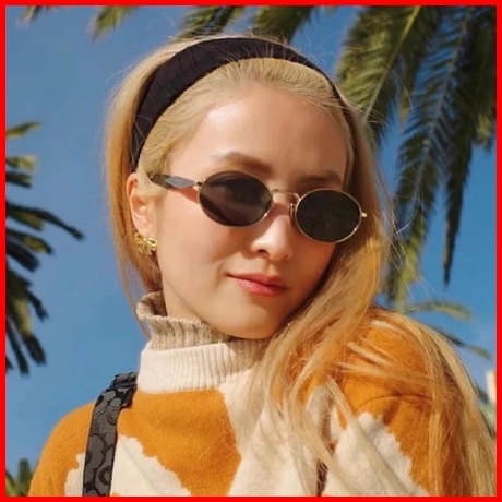 Kacamata Htiam Uv400 Matahari Logam Elips Wanita Pria